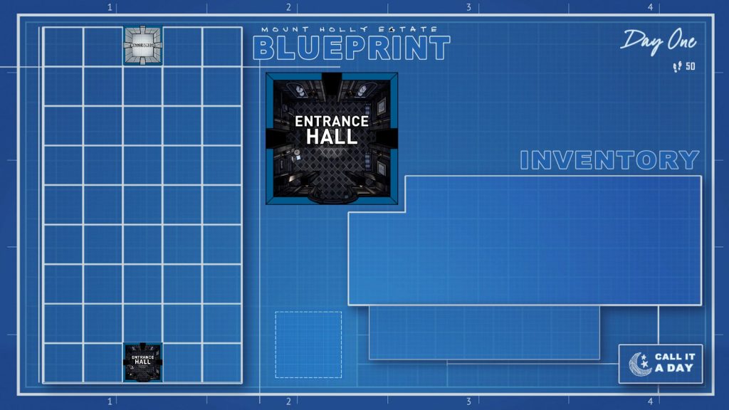 Chaque matin, vous devez donc repartir du hall d’entrée et de ses trois portes, et le plan du manoir sera totalement différent de celui de la veille. Au fil des jours, votre exploration du manoir va vous permettre d’en découvrir plus sur le manoir, ses différentes pièces, mais aussi sur son histoire. Et surtout, la liste des questions que vous vous posez va grandement s’allonger. Une fois que vous n’avez plus de moyen de placer de nouvelles pièces, ou que vous êtes à court d’énergie, il est temps d’aller vous coucher, pour recommencer un nouveau cycle le jour suivant.