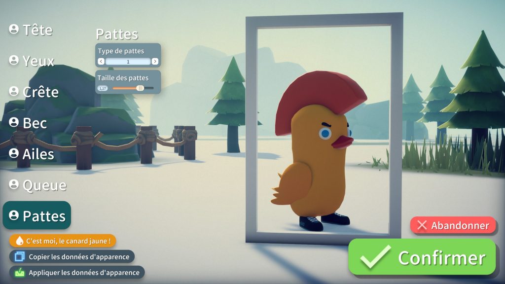 La soif et la faim étant également gérées, il faut surveiller les indicateurs sous peine de subir de gros malus, voire la mort de votre anatidé. Enfin, les cartes ne sont pas désertes et de nombreux et variés volatiles hostiles – dont des boss – ne manqueront pas de vous faire des misères. J’avoue que la première fois que j’ai lancé le jeu, j’y suis allé la fleur au fusil et me suis vite fait plumer par un piaf énervé !