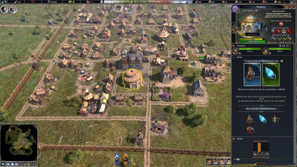 La majorité des bâtiments, hôtel de ville en tête, peuvent ainsi être améliorés, occasionnant des bonus divers bien sûr mais également l’accès à des installations plus avancées. Ces bâtiments vous donnent accès à des produits de luxe, des armes et armures, du papier et des livres etc. Tout ceci améliore la qualité de vie des habitants et permet entre autres d’améliorer leur éducation, d’accélérer les recherches ou de défendre plus efficacement vos installations.