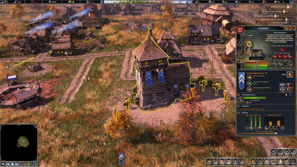 Après avoir défini la position initiale de votre hôtel de ville, il est temps de produire des ressources afin de construire des habitations pour abriter vos villageois, puis de penser à placer quelques cabanes de chasse et de pêche, un entrepôt et petit à petit des installations plus imposantes et spécialisées.