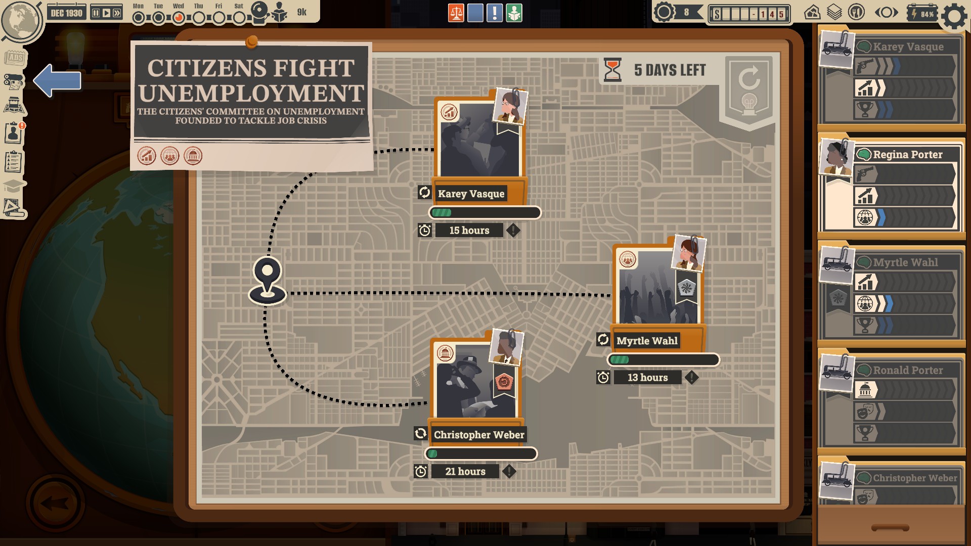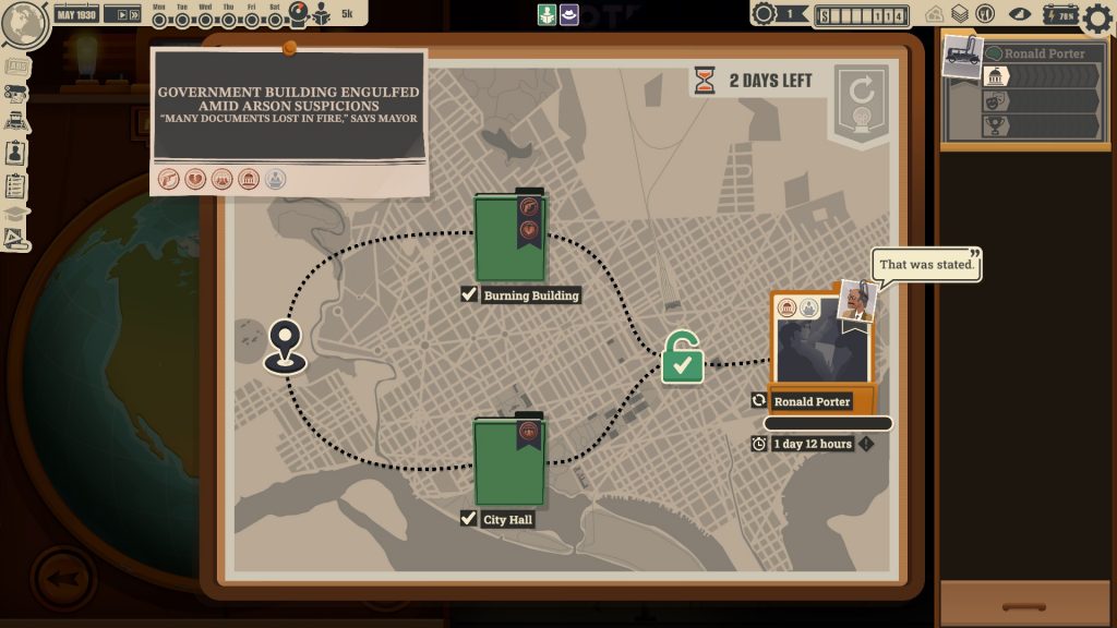 Tant que nous sommes à causer de la mini-map, vous noterez très vite qu’il y a des factions : maire, mafia, armée, haute société… En satisfaire une c’est en frustrer une autre bien entendu. Chaque faction peut vous proposer, chaque semaine, un défi pour votre journal comme publier un maximum de politique, pas de sport… Les récompenses sont nombreuses et échouer n’a fort heureusement pas d’impact négatif sur votre réputation auprès de cette faction.
