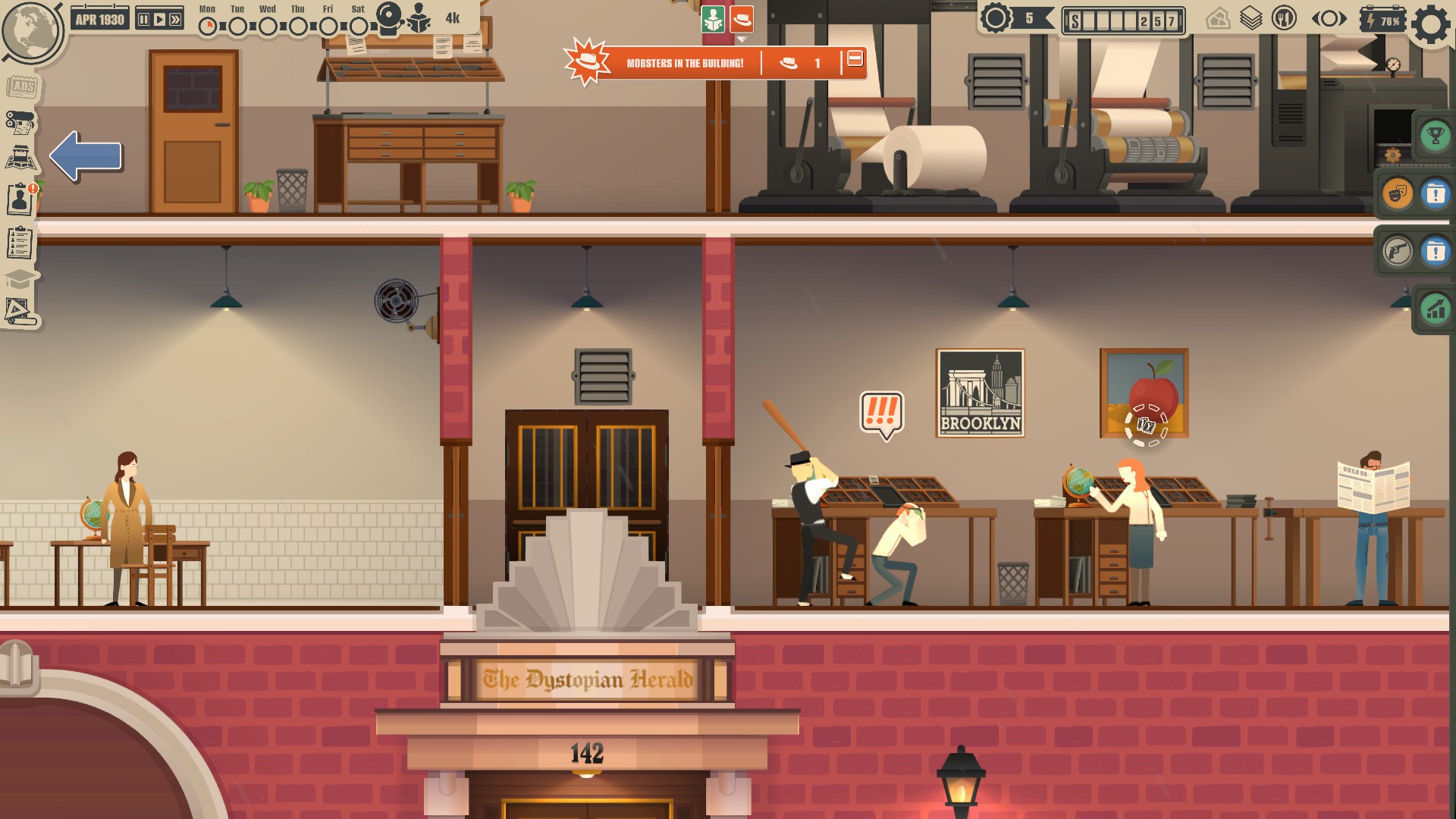 Oui, je ne vais pas tourner autour du pot pendant des heures, News Tower est un petit bijou à plusieurs niveaux. De part son thème, pour commencer. En vous mettant dans la peau de l’héritier d’un journal hebdomadaire dans le New York des années 30, vous vous retrouvez propulsé dans un monde bien loin de notre société informatisée.