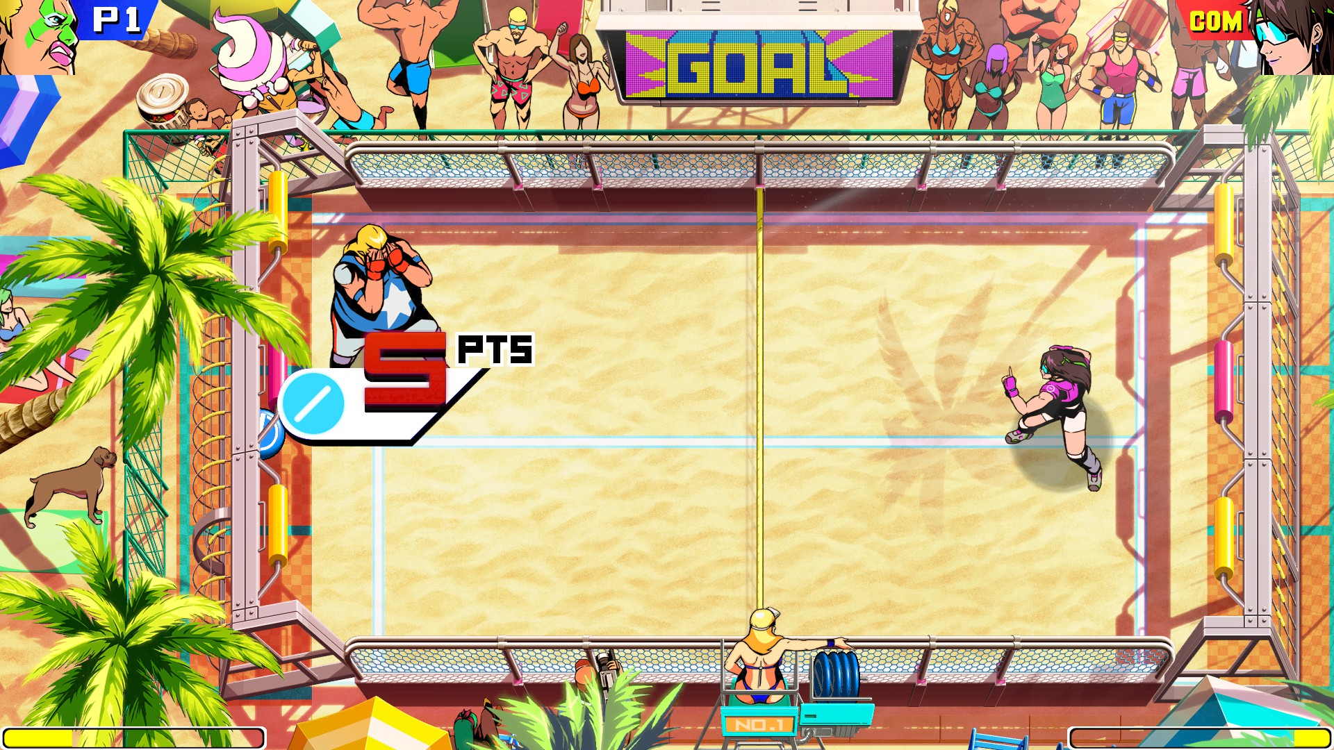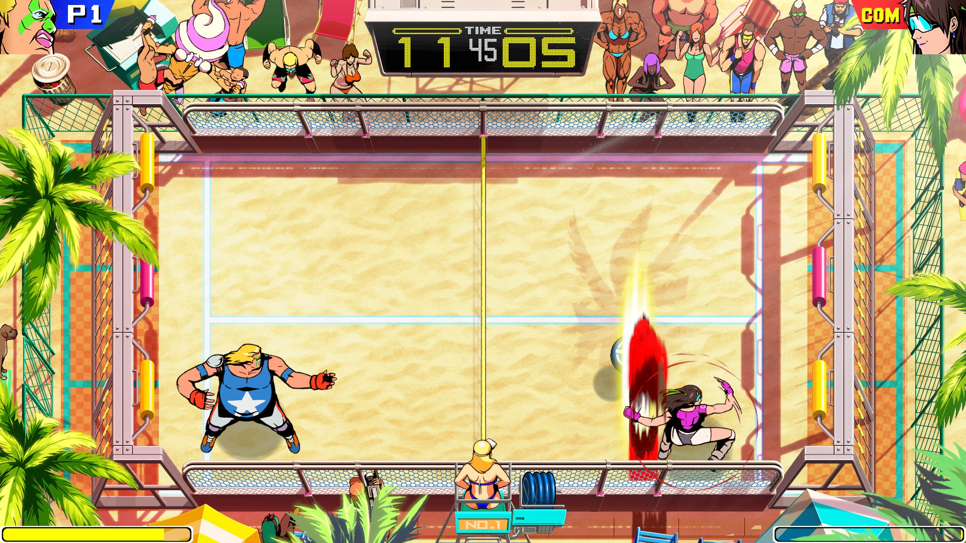 Dotemu est connu pour permettre à d’anciennes gloires du jeu vidéo de revenir sur le devant de la scène, comme les vieilles stars que l’on relooke pour leur donner une seconde jeunesse alors qu’elles ne le méritaient pas forcément. C’est aussi un développeur qui apporte des suites à de vieux jeux dont le très bon Street of Rage 4. Windjammers 2 apparaît ainsi comme une évidence. Quasiment trente ans après, le premier opus est encore joué et il ne demandait qu’à accueillir un petit frère. Windjammers 2 se veut dans la lignée du premier, c’est à dire un jeu fun et profondément ancré dans l’arcade. Pas de mode histoire, d’enrobage pour débloquer des nouveaux personnages ou des niveaux, tout est à disposition dès le début et c’est tant mieux.