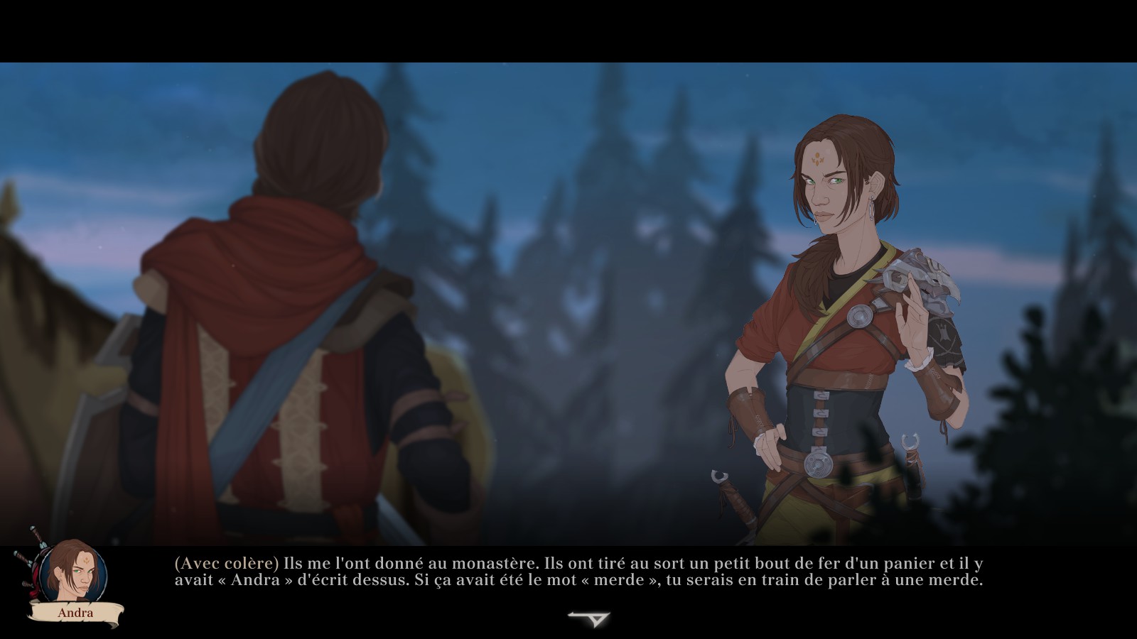 Je dois avouer que les dialogues et le passage de l’un à l’autre des protagonistes ne facilitent pas la tâche pour éclaircir les zones d’ombre, mais je retrouve ce qui me plaisait beaucoup dans The Banner Saga : le jeu va, par l’intermédiaire du texte, faire vivre l’aventure au joueur. Pas de délires pyrotechniques ou d’esbroufe visuelle, mais une narration qui laisse place à l’imagination du joueur et donne l’illusion de vivre une aventure.