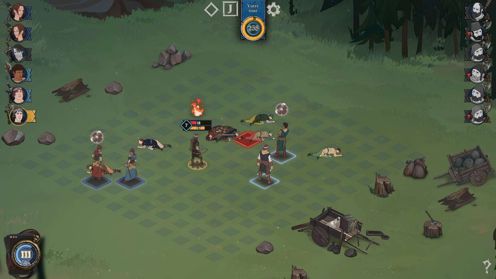 Pour les combats, la seule similitude c’est la grille carrée et la double barre de vie. Pour cette dernière, elle ne s’utilise pas du tout de la même manière dans AoG que dans BS.