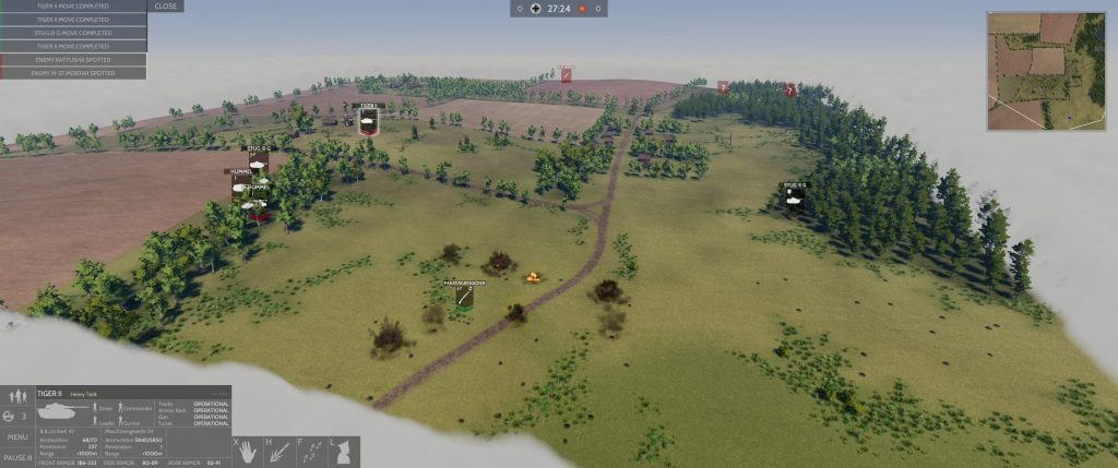 L’IA oscille d’ailleurs entre le correct et le peut mieux faire, en faisant des contournements avec ses chars mais en envoyant son infanterie à découvert à travers champs. Chaque unité est parfaitement modélisée au rivet près mais, STR oblige, ne vous attendait pas à une modélisation des dégâts aussi précise que dans un Combat Mission par exemple. La reconnaissance, comme il se doit, joue un rôle primordial dont l’oubli se paie au prix fort…