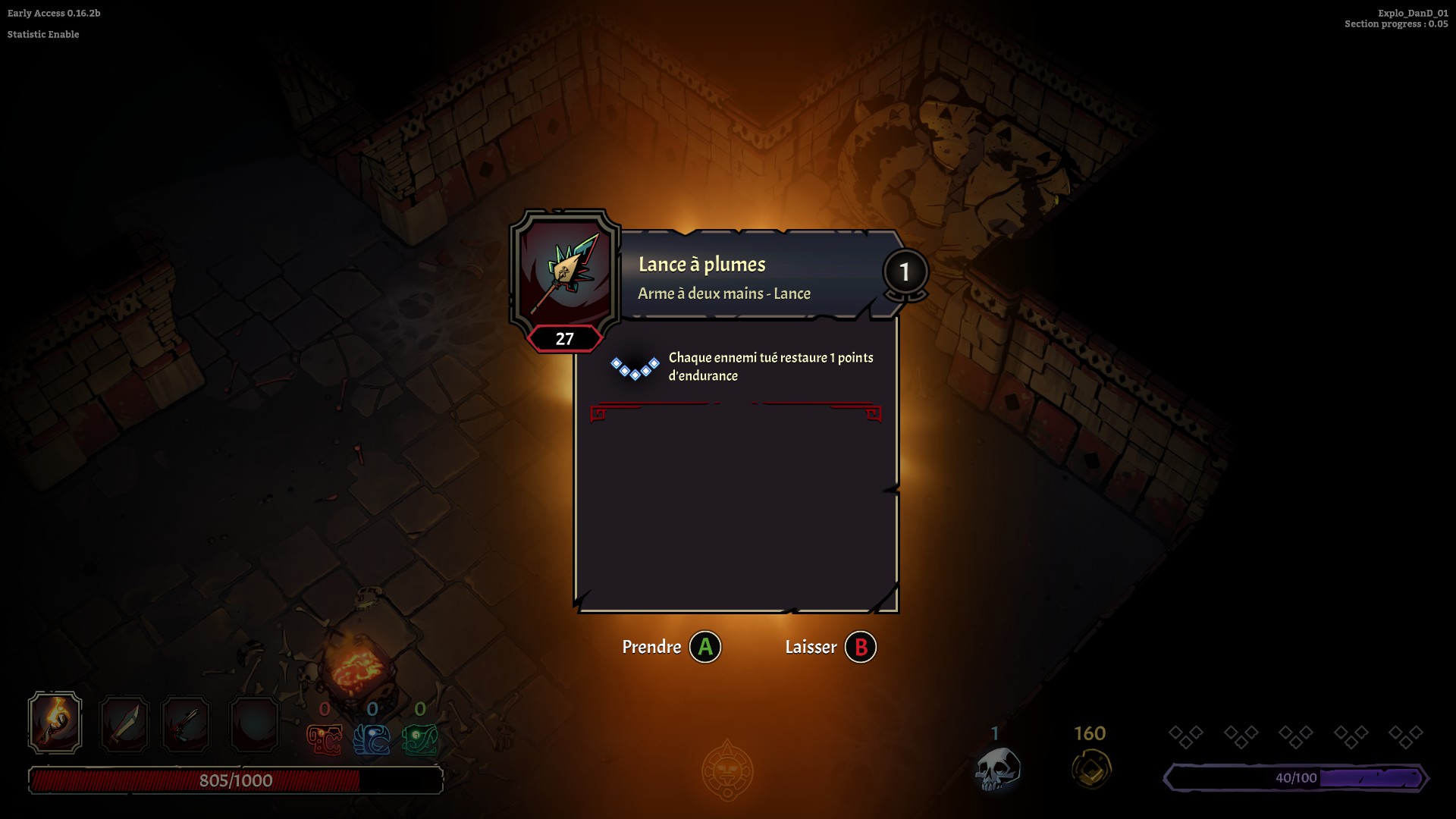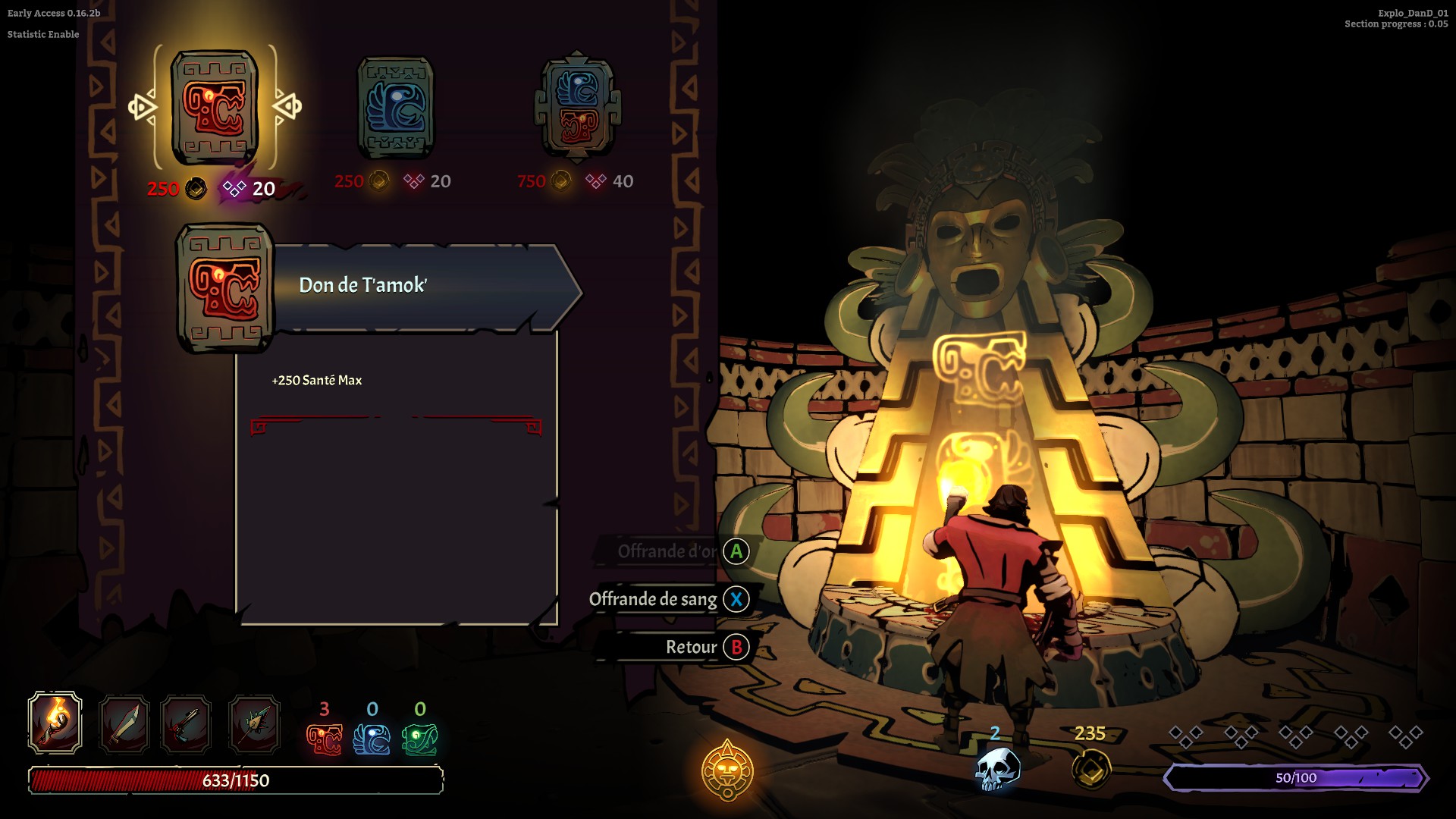 Petit aparté avant de me lancer dans le fond et la forme du jeu. Curse of the Dead Gods est en Early Access, c’est à dire qu’il n’est pas encore complet ou dans une version 1.0 si vous préférez. En effet, les développeurs ont décidé de proposer le début du jeu et de l’enrichir au fur et à mesure jusqu’au moment de sa sortie officielle.