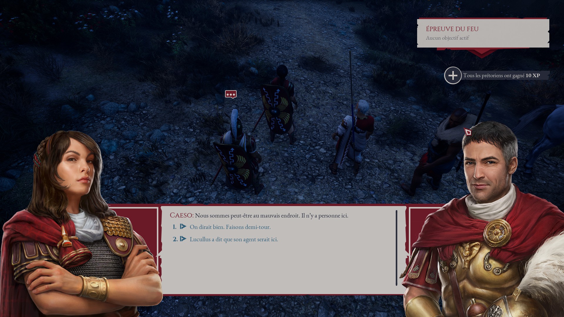 Premièrement, les phases de dialogues permettent d’en connaitre plus sur la période en cours et les personnages. S’ils sont bien écrits, ils ne transcendent pas le jeu par la possibilité de faire des choix. Le trait choisi en début de partie ne m’a quasiment pas servi, sauf pour une mission secondaire. Une volonté, selon moi, des développeurs de ne pas offrir trop de choix artificiels au joueur. Il y a bien quelques choix qui vont modifier le rapport que vos troupes auront avec vous : certaines factions approuveront et d’autres non. Cela ne se fait pas assez sentir pour donner l’impression d’avoir un impact durable. Pour autant, il appartient au joueur de « guider » sa destinée, le jeu rappelant à travers les autres personnages que vous êtes celui qui décide.
