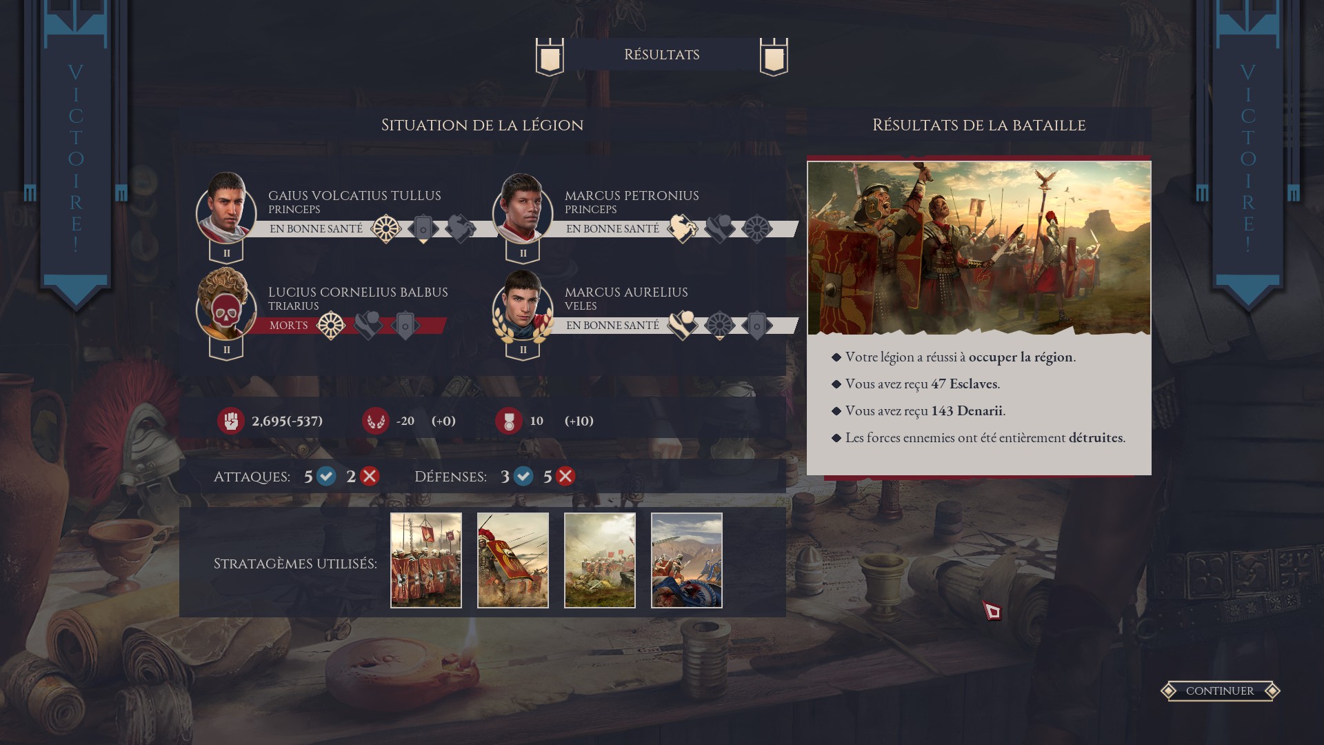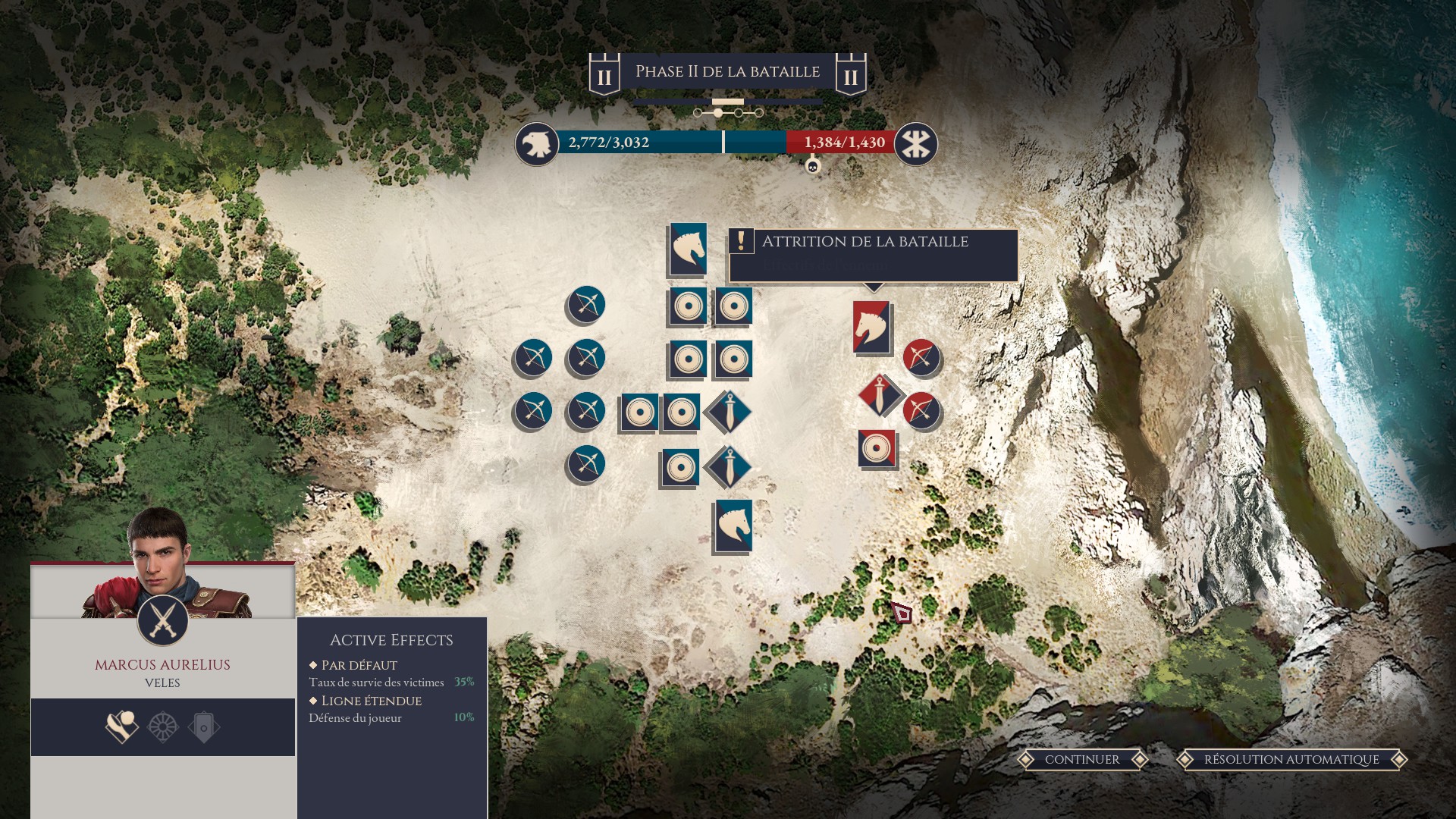 La promotion éclair du personnage incarné par le joueur se justifie pour un jeu vidéo, mais donne plus envie de sourire qu’autre chose. La notion de temps est abordée dans la phase d’exploration, mais pas suffisamment dans ce genre de situations, ce qui donne une impression étrange. Tu fais cramer un port et tu deviens un legatus avec des centurions, des légions sous tes ordres tout en étant une femme. Niveau crédibilité, on a vu mieux même en jeu vidéo.