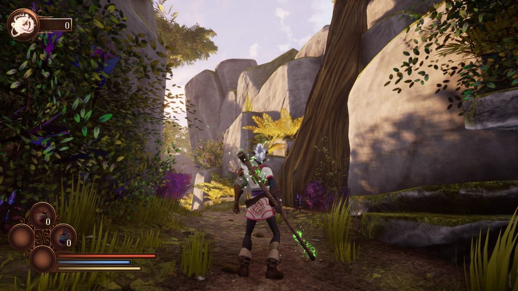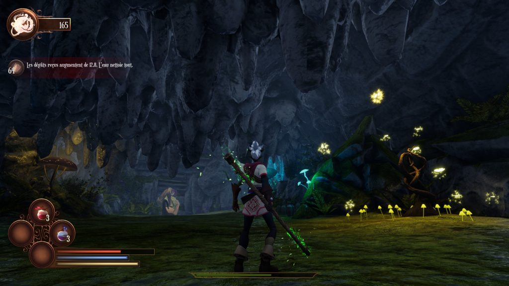 Là où la jeu tranche singulièrement avec tous les ersatz de Dark Souls qui sortent tous les mois, c’est par son esthétique très étrange. Notre personnage est une plante à laquelle la déesse a donné une forme humaine et la plupart des ennemis adoptent une forme assez incongrue, allant de l’insecte hargneux au nain de jardin furibard en passant par le serpent cuirassé.