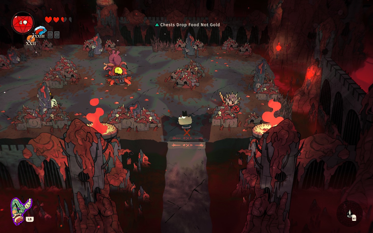 Pour ceux qui seraient passés à côté de Cult of the Lamb ou qui vivraient sous un caillou, petite session de rattrapage. Dans un mélange de mignonitude et de gore, Cult of the Lamb est un melting pot à la fois d’un Binding of Isaac et d’un Oxygen not Included avec une vue qui rappelle Don’t Starve. On y parcourt des donjons en pourfendant les hérétiques tout en s’occupant, entre deux runs, de son petit campement de fidèles dont il faut s’occuper. Ça, c’était la base.