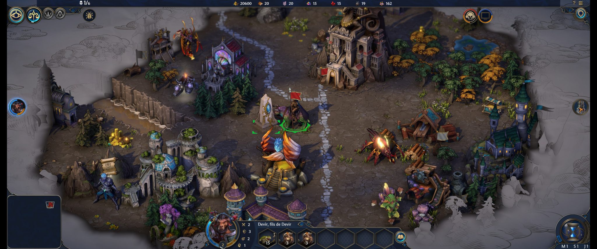 Pour le reste, je dois dire que c’est, à mon grand plaisir, du classique dans la plus pure lignée de la série. Vous envoyez votre héros explorer la carte et saisir des ressources, vous évitez soigneusement les monstres errants les plus forts jusqu’à avoir de quoi les marraver et vous développez en parallèle votre ville pour sortir des unités de plus en plus puissantes. Les batailles, si vous décidez de les jouer, se déroulent toujours sur la fameuse grille et sont toujours aussi tactiques.