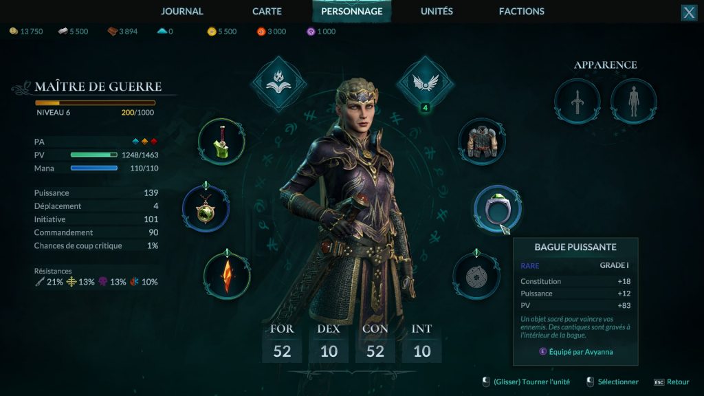 Que serait un jeu de rôle sans possibilité de customiser et de faire évoluer son personnage central ? ‘Ben, ça ne serait pas un jeu de rôle mon bon Monsieur’, répondrait Madame Michu. Et elle aurait raison. Heureusement dans Disciples: Domination ces possibilités existent bien. Vous pouvez ainsi faire d’Avyanna une maitresse de guerre (une guerrière quoi), une souveraine primordiale (capable de dompter les éléments), une régente sacrée (plutôt tournée vers la guérison de ses alliés), ou encore une reine sorcière (maitresse des arts obscurs).