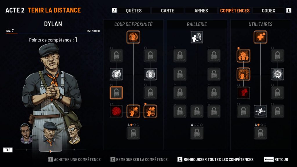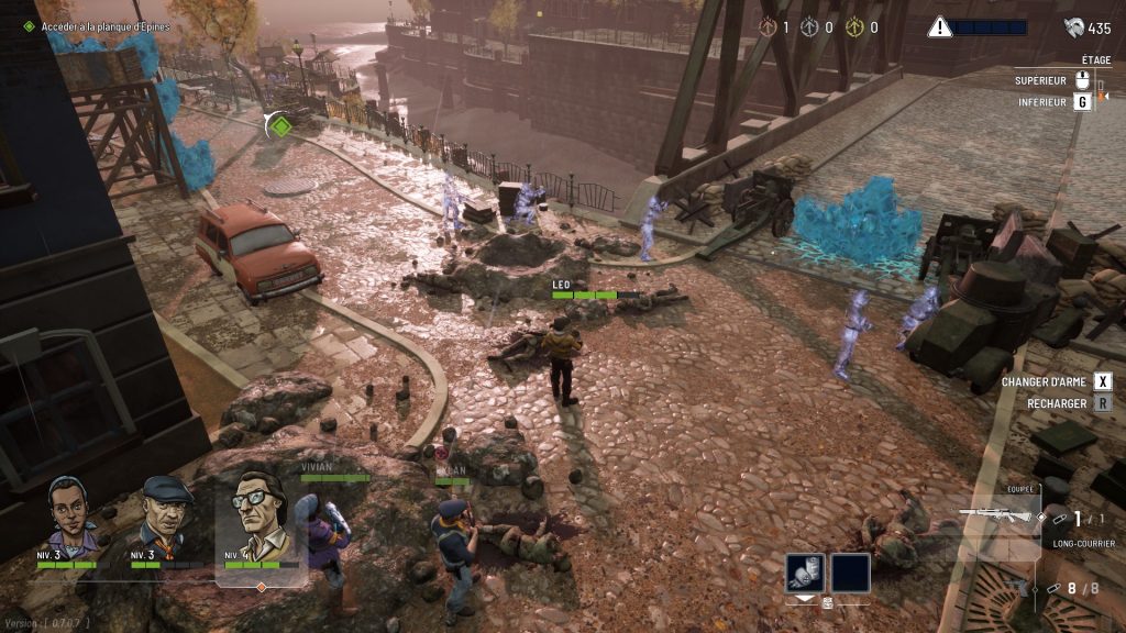 Car vous allez mourir. Souvent. Les ennemis vous affrontent par équipe de rugby entière et peuvent décimer en 1 ou 2 attaques chaque membre de votre trio de résistants. Ce n’est pas grave car ici la mort n’est qu’une étape. Une fois passé l’arme à gauche, vous recommencez au début de l’acte avec un équipement basique aléatoire et le maintien des compétences et des connaissances acquises.