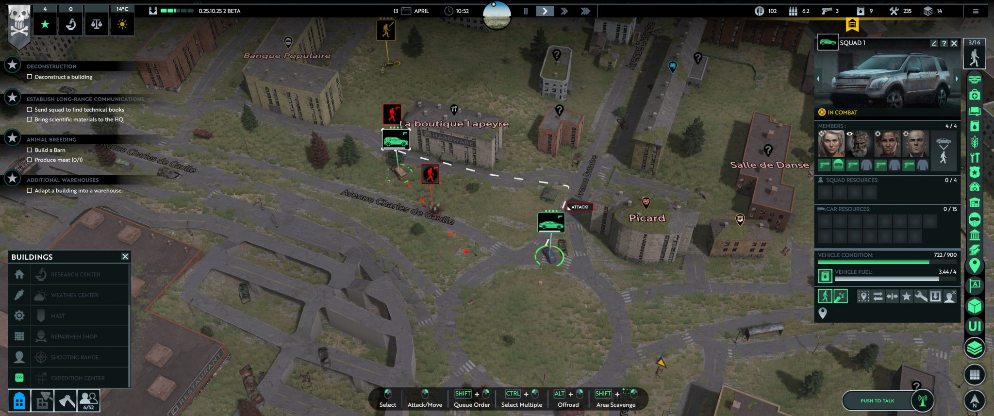 Ils feront des rencontres qui amèneront différents choix (ne faites jamais confiance aux inconnus) et vous permettront de progresser dans la campagne au fur et à mesure que vous explorerez ce monde post apocalyptique. Si les débuts sont un peu poussifs, avec des équipes à pied qui ne peuvent aller bien loin, une fois des véhicules en état de marche découverts, les choses s’accélèrent.