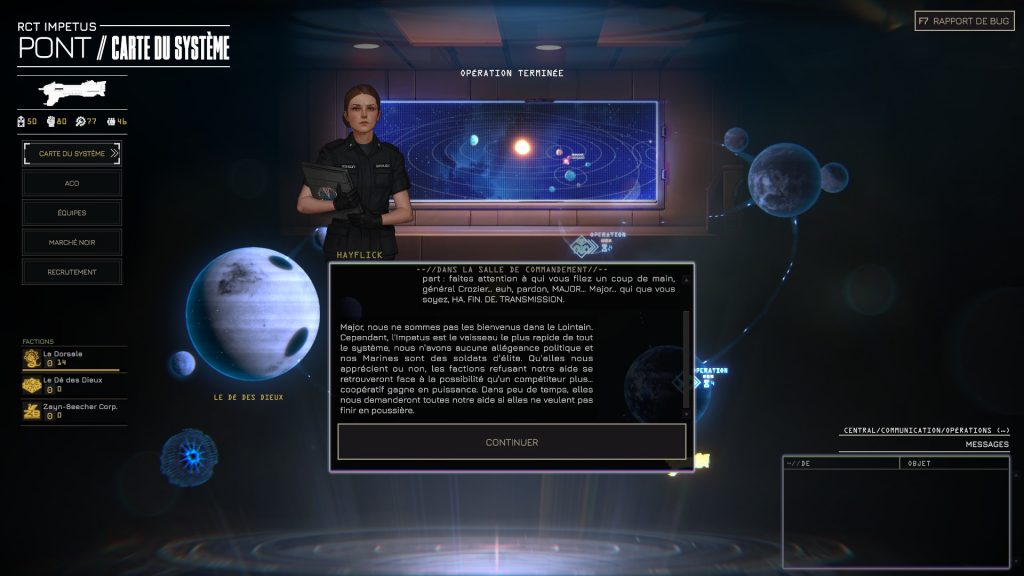 Et les véhicules (blindés ou non) et leurs armements ne sont pas en reste. Encore faut-il avoir assez de ressources pour se procurer tout cet attirail. Quoi qu’il en soit la variété des armes, équipements, véhicules, armures, etc. potentiellement disponible est impressionnante. Il vous faudra donc jouer aux mercenaires de l’espace en prêtant votre force de combat aux différentes factions antagonistes qui peuplent le Lointain. Elles vous confieront diverses missions destinées à faire avancer leur agenda et en contrepartie de vos succès vous récompenseront avec du matériel et des ressources.