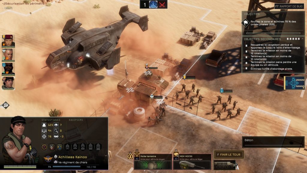 Ou encore lorsqu’il faut récupérer une cargaison comme objectif secondaire mais que celle-ci se trouve au sommet d’une montagne (terrain infranchissable). Heureusement, le seul impact de la perte d’une campagne est une baisse de popularité auprès de la faction qui vous a engager, ce qui est rattrapable. Mais, attendez-vous à éventuellement subir des échecs, non pas à cause de manque de compétence, mais en raison de quelques bugs frustrants.