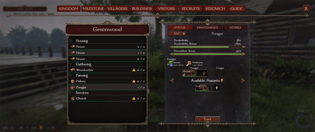 Votre village grandira au fur et à mesure que vos infrastructures s’amélioreront, vous obligeant à mettre la main à la patte. Chaque bâtiment nécessite en effet un minimum de décorations et d’accessoires pour être éligible à une évolution, qui permettra d’affecter plus de monde ou d’améliorer la productivité.