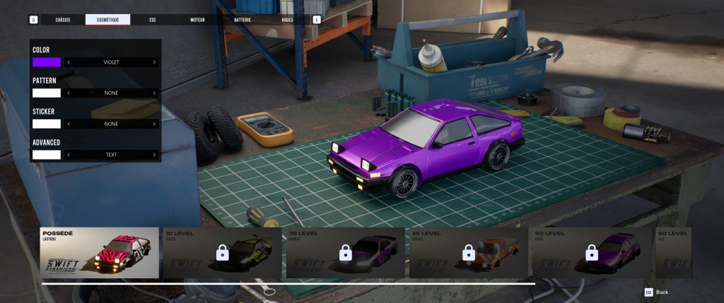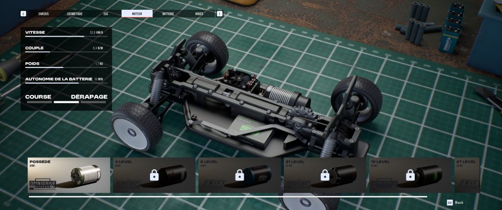 Et comme c’est la norme dans le jeu en ligne, vos victoires – même en solo – vous permettront de débloquer de nouvelles batteries, moteurs et autres peintures pour adapter au mieux la voiture à vos envies.
