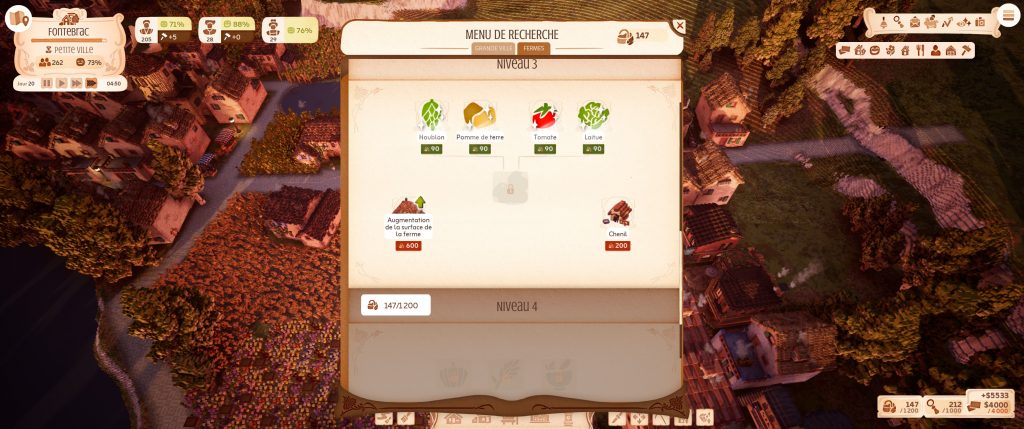 Vous pourriez vous dire que le jeu montre vite ses limites, Early Access oblige. Mais non, même pas, il y a largement de quoi faire pour le moment. Une fois votre première ville en bonne voie, on vous ouvre une nouvelle zone où tout recommencer en ajoutant l’agriculture. Qui ouvre un nouvel arbre de recherche. Oui, sous ses airs mignons, Town to City a de la profondeur à revendre.