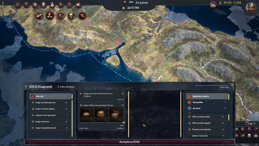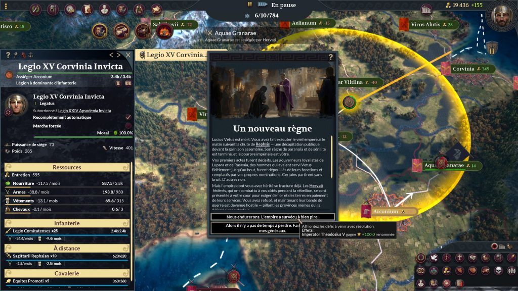 Il y a encore des légions de couacs ici ou là, des territoires conquis alors qu’ils ont des garnisons militaires qui ne les défendent pas automatiquement, le trésor qui se vide alors qu’il devrait être positif, des rebelles qui sortent en boucle sans eux avoir besoin de ravitaillement, etc.