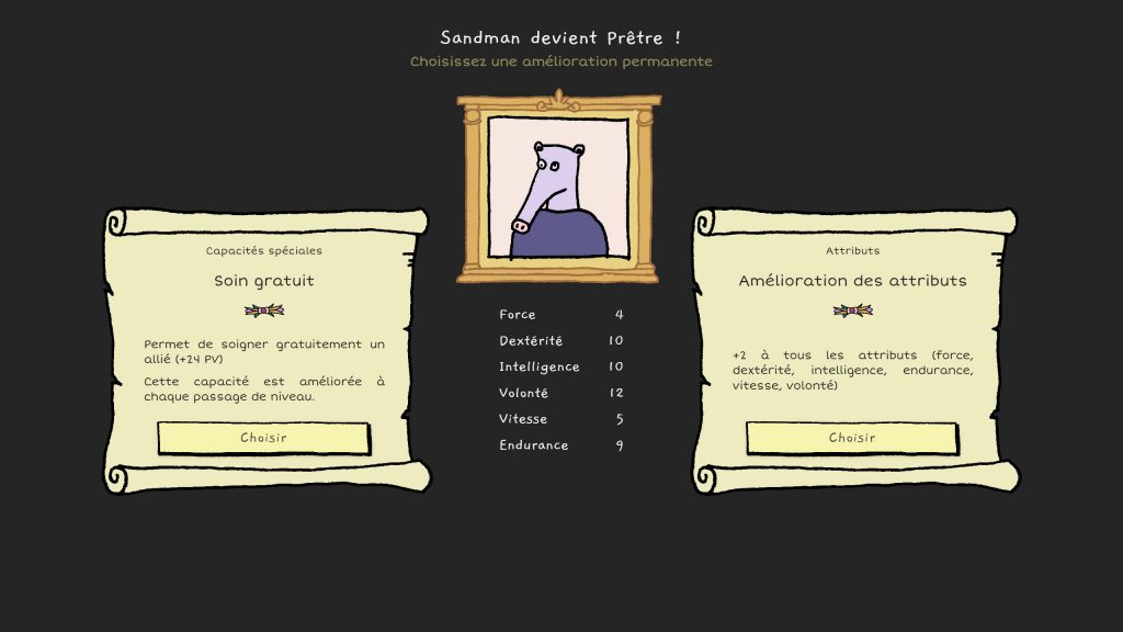 Cet hommage aux jeux de rôles classiques point&clic type Might&Magic et à la BD – notamment les créations de fantaisy simples et colorées d’Elodie Shanta – l’ont poussé dans ses retranchements. En effet, il a non seulement écrit et programmé le jeu mais il a également dessiné à la main sur papier puis peint la totalité du contenu de l’aventure, soit 267 décors et 789 sprites ! Pour quelqu’un qui n’est pas dessinateur de formation ce n’est pas une mince affaire !