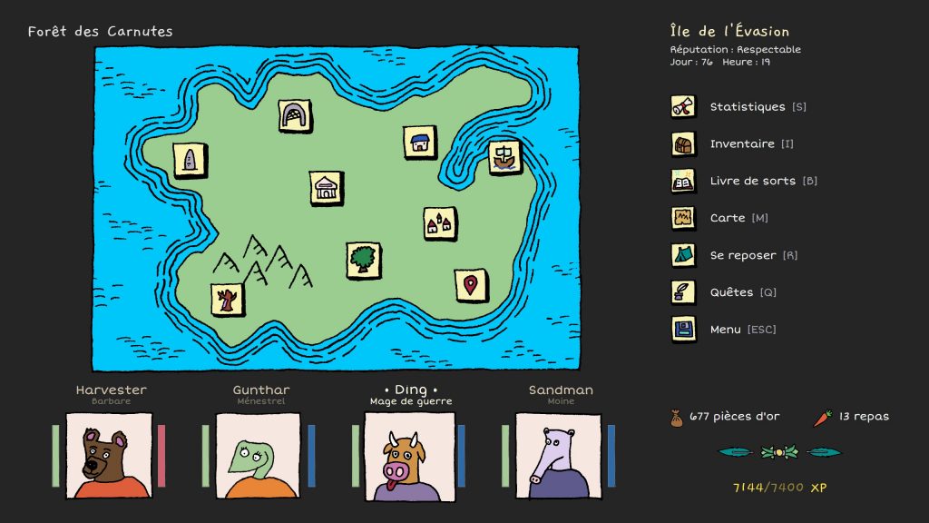 Ok, j’avoue, j’ai copié-collé le pitch officiel ! C’est mal mais il résume parfaitement la situation (et en plus, je ne suis pas payé !). Tout commence par la composition de votre joyeuse bande composée de quatre animaux/aventuriers.
