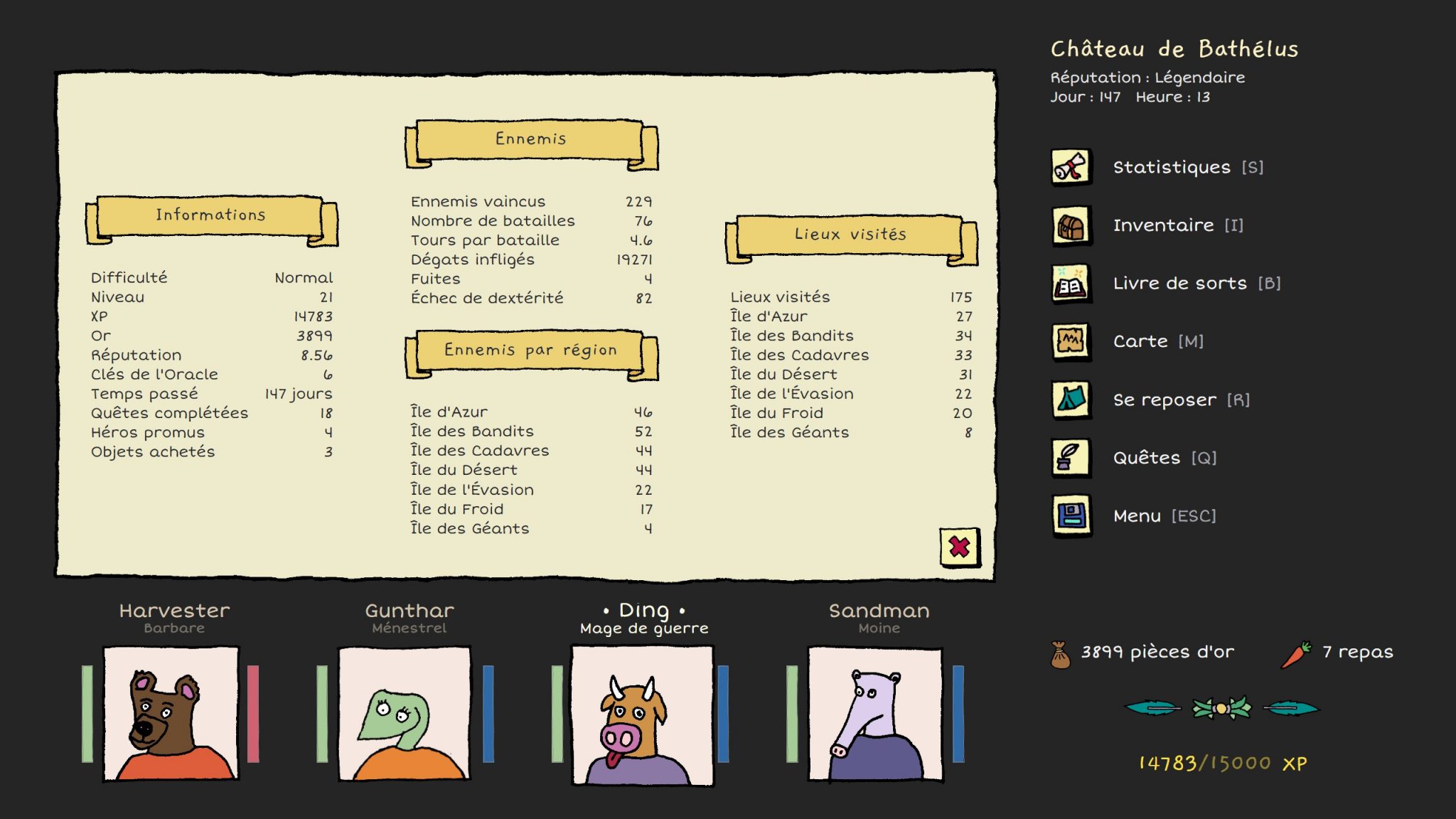 Heroes of the Seven Islands tend à être répétitif mais j’ai pris du plaisir à chaque fois que j’ai relancé le jeu et me suis attaché à mes quatre bras-cassés qui ont tout de même fini par devenir sacrément balèzes ! La musique est plaisante, discrète et ne vous reste pas des heures en tête une fois que vous avez terminé de jouer.