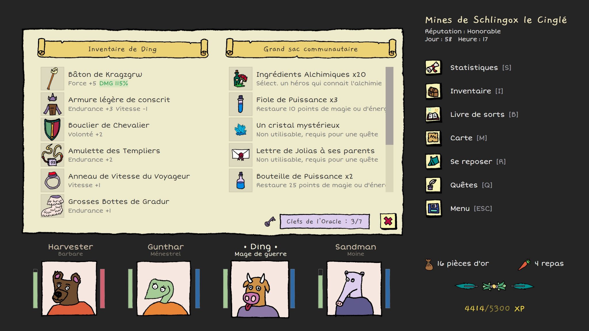 Cet hommage aux jeux de rôles classiques point&clic type Might&Magic et à la BD – notamment les créations de fantaisy simples et colorées d’Elodie Shanta – l’ont poussé dans ses retranchements. En effet, il a non seulement écrit et programmé le jeu mais il a également dessiné à la main sur papier puis peint la totalité du contenu de l’aventure, soit 267 décors et 789 sprites ! Pour quelqu’un qui n’est pas dessinateur de formation ce n’est pas une mince affaire !