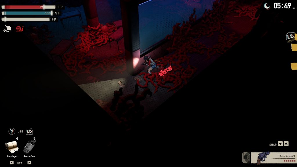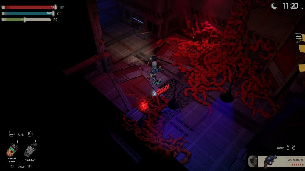 Démunie, notre héroïne ne pourra compter que sur elle-même et ses capacités d’improvisation pour fabriquer balles, armes et autres ustensiles en récupérant, en cours de route, du matériel pour affronter les monstres terrifiants qui se dresseront sur son chemin.