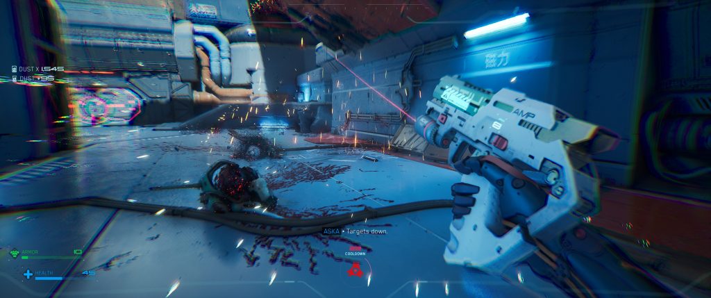 Les combats, comme on peut s’y attendre dans un fast FPS digne de ce nom, vous feront alterner entre vos différentes armes et surtout leurs modes de tir secondaires et surtout vos pouvoirs. S’il est très vite évident que vous ne pourrez pas déverrouiller tout l’arbre technologique, il est agréable de voir que chaque pouvoir débloqué est vraiment utile et devra correspondre à votre style de jeu.