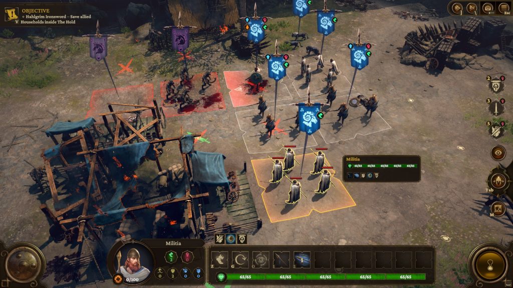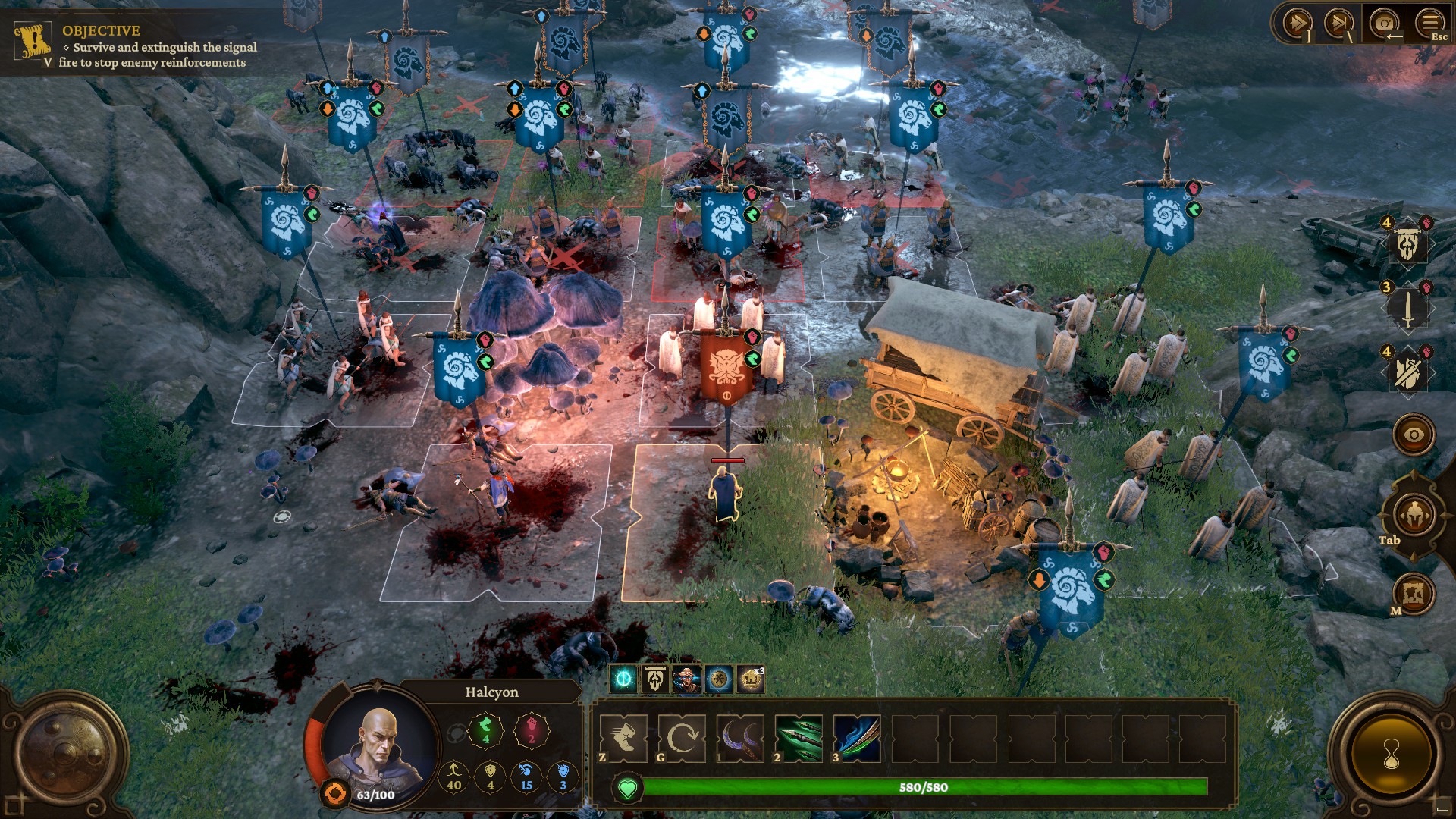 Les héros peuvent gagner des points d’action supplémentaires en utilisant la magie ou en effectuant des attaques spéciales. Bien sûr, les unités ont une orientation et ainsi les prendre de flanc devient une tactique payante. Les unités peuvent bénéficier de capacités d’attaque à distance ou encore choisir de se replier en bon ordre. Il est également possible d’effectuer des charges si plusieurs cases auxquelles l’unité fait face sont dégagées. Ce qui augmentera les dégâts faits à l’adversaire.
