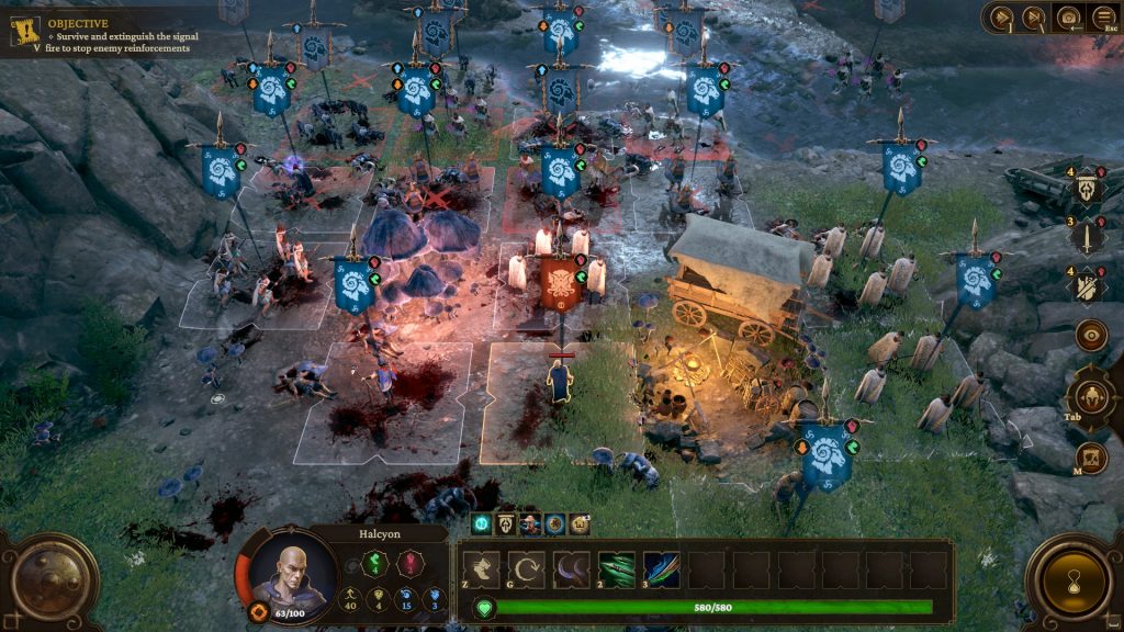 Intéressant, non ? Le problème est que l’aspect gestion se limite à cela. Une campagne linéaire où l’on enchaine mission après mission pour suivre une histoire somme toute assez banale (un héros en quête de revanche) avec des personnages, relevant de l’archétype, auquel il est difficile de s’attacher. Une campagne avec quelques embranchements scénaristiques aurait sans doute été plus prenante, car ici les choix se limitent à quelles nouvelles unités recruter et comment optimiser ses héros.
