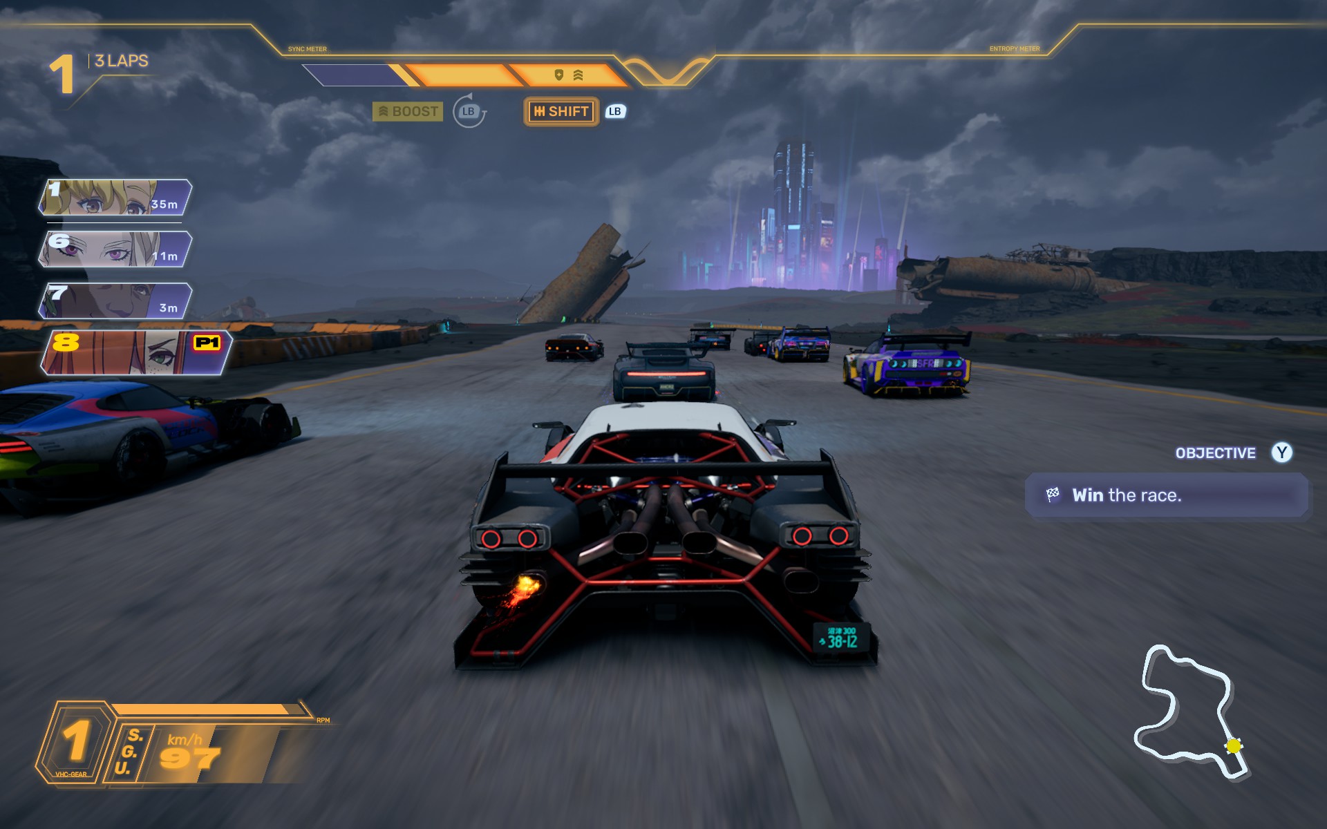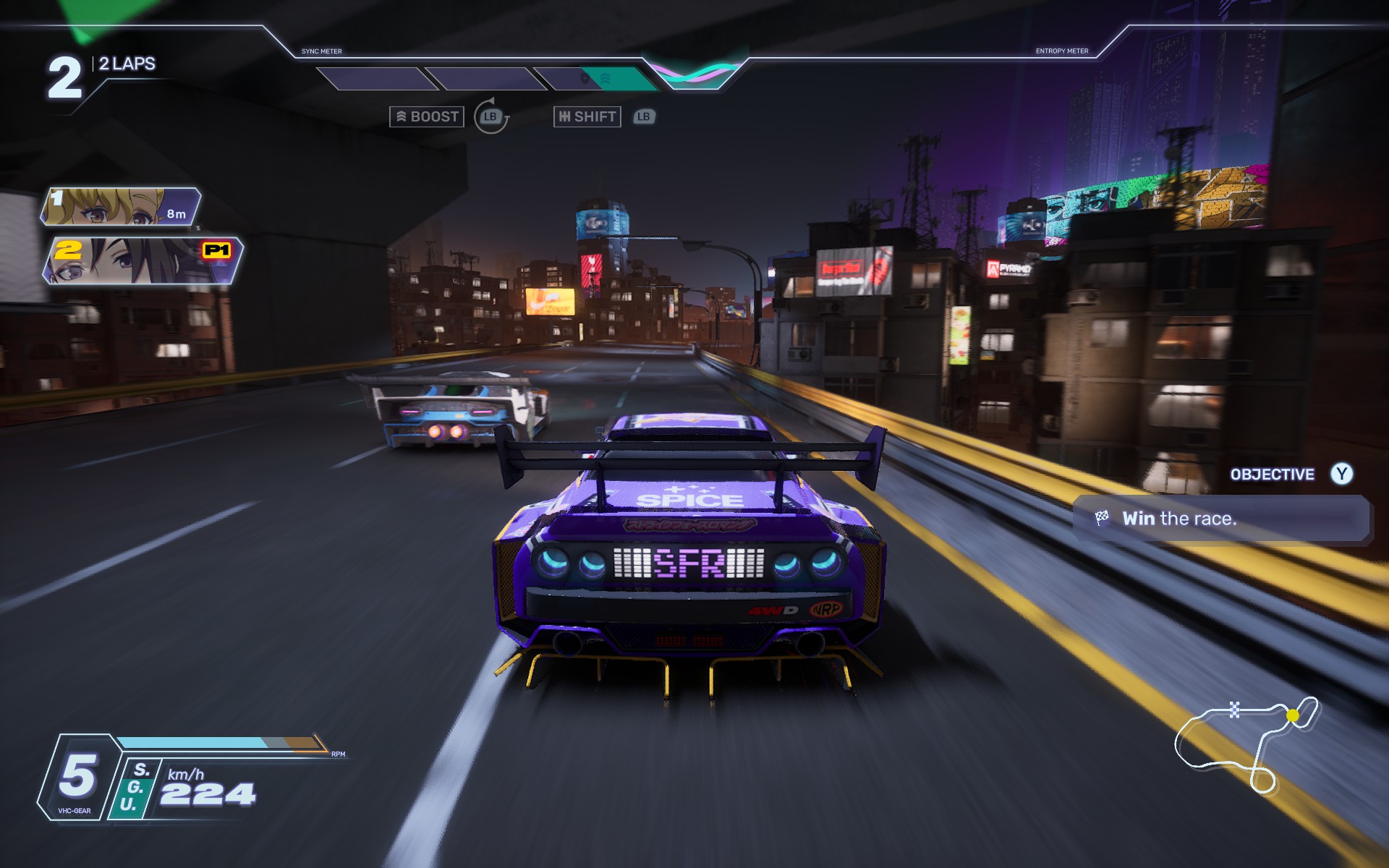 Nous l’avons vu, le stick droit sert aux drifts avec tout ce que cela comporte de prise en main pour s’habituer aux différents véhicules. Le stick gauche, qui permet de braquer, va vous aider à peaufiner vos dérapages et à les calibrer au millimètre. Mais ça ne suffit bien entendu pas. Il faut aussi gagner du boost pour déclencher des accélérations foudroyantes.