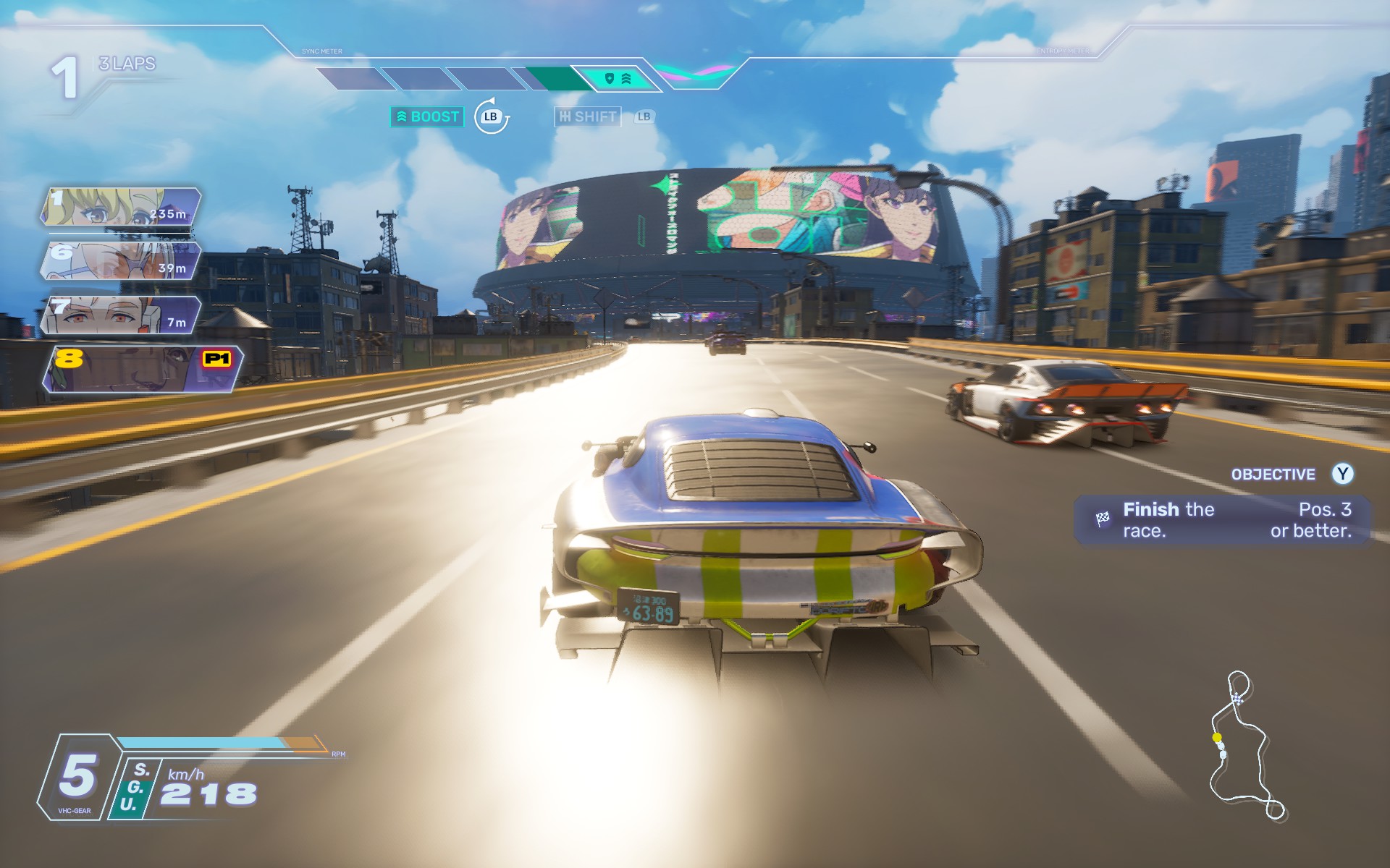 Et pour ce faire, il va vous falloir passer les vitesses pile au bon moment et déclencher le boost avec le bon timing. Ceci se fait avec L1 bien entendu, en regardant d’un œil l’indicatif visuel pour être dans le tempo et de l’autre la piste pour enchaîner les dérapages.