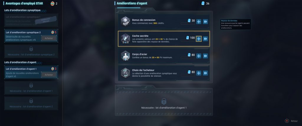 En parlant de grind, il est à noter que malgré le tutoriel, il n’est pas toujours très clair de savoir ce qui est permanent de ce qui sera perdu en cas de mort. On hésite donc parfois à acheter des upgrades en pleine partie pour se retrouver à tout perdre en cas de mort. C’est un peu dommage.