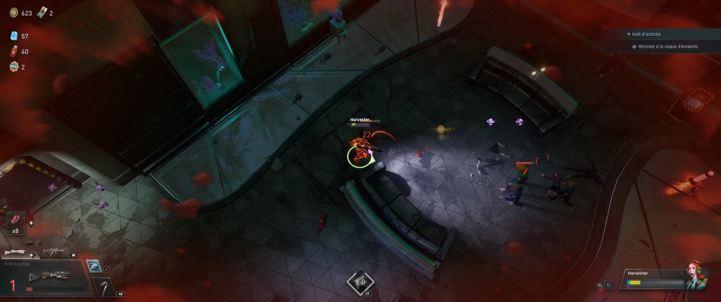 Section 13 est donc un twin-stick shooter avec des zombies. Contrairement à l’élu de mon cœur, c’est un roguelike, ce qui veut dire qu’il faudra recommencer inlassablement les niveaux en cas de mort. Je ne sais pas vous, mais cette mode des roguemachins commence à me lasser, les développeurs semblent ne plus savoir faire que ça.