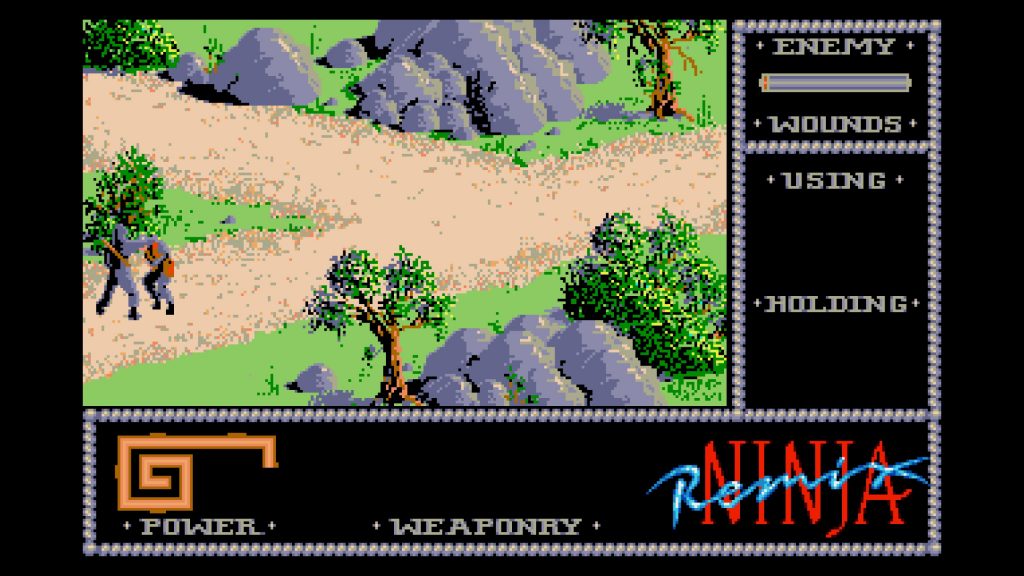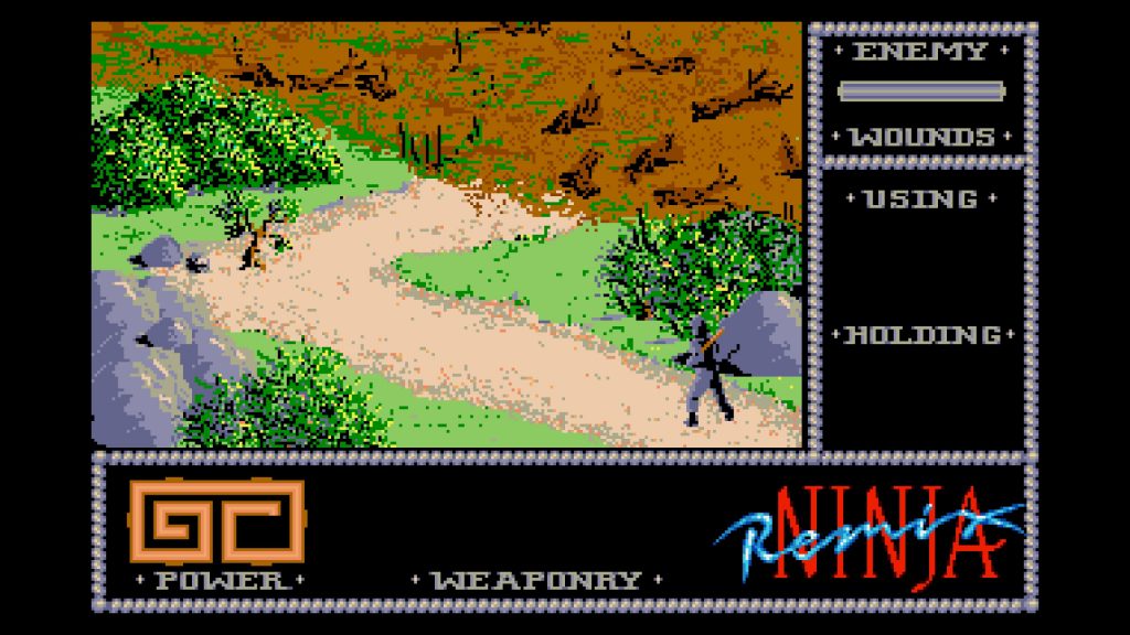 Parti les mains dans les poches, l’objectif d’Armakuni et du joueur sera donc de défaire les hommes de main du shogun fripon avant d’aller lui apprendre les bonnes manières. Et, si possible, trouver de l’armement en cours de route et, tant qu’à faire, résoudre quelques puzzles. Allons donc, joystick en main obtenir justice et récupérer ces saletés de parchemins sacrés.