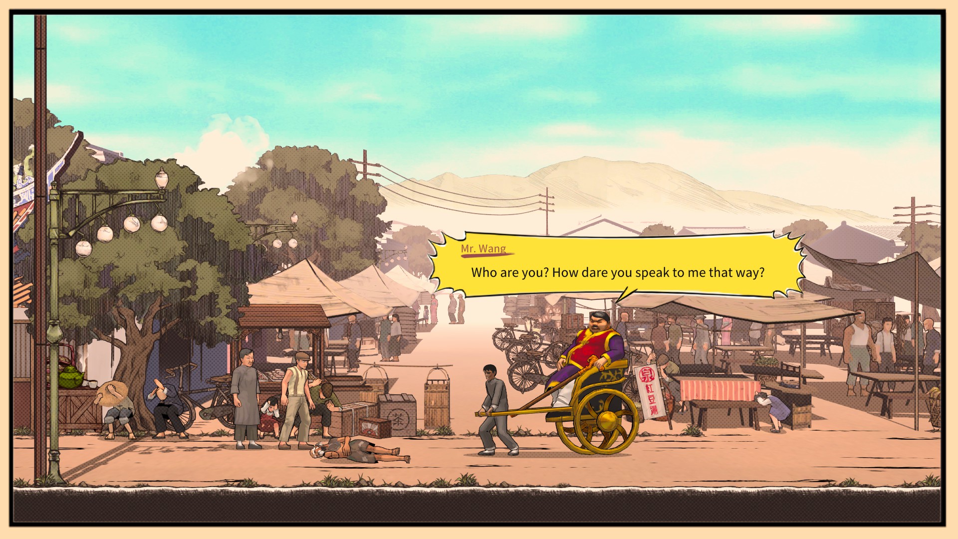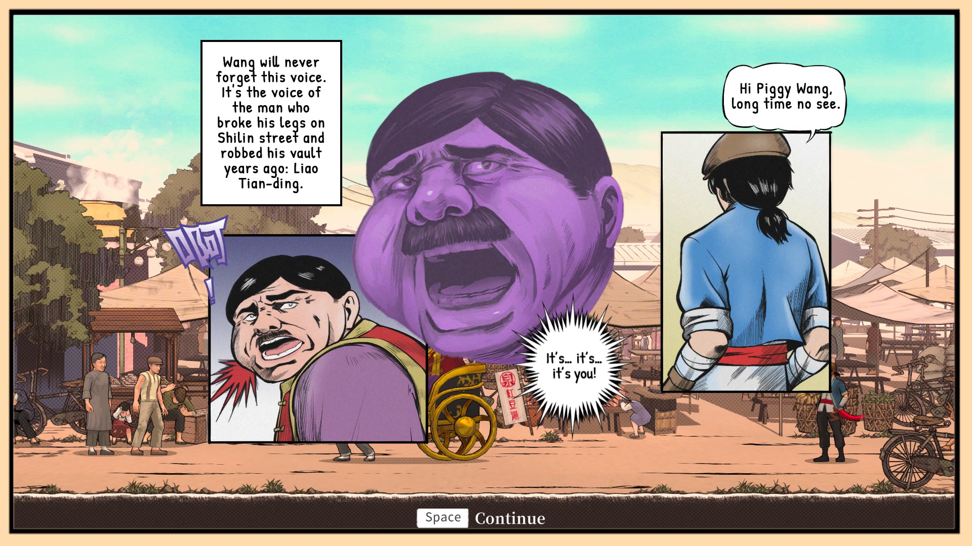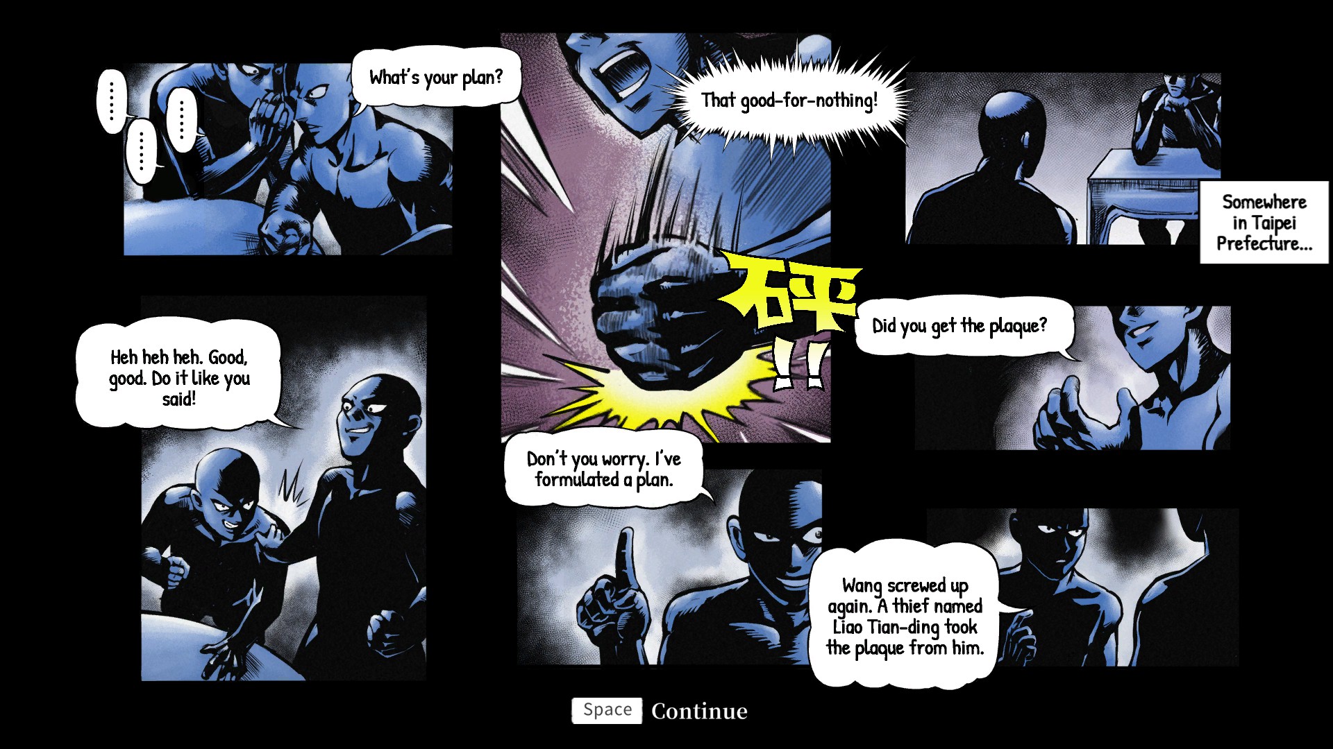 Le jeu nous permet d’incarner Tian Ding, un héros taïwanais qui a connu de multiples versions de son histoire selon qui la raconte : Robin des Bois pour les uns, voleur pour les autres… Dans cette version vidéoludique, le côté Robin des bois est mis en avant avec un Tian Ding volant aux riches très méchants pour donner aux pauvres très vieux et avares en bonus. L’histoire est plutôt intéressante et permet au joueur d’en apprendre un peu plus sur Taïwan alors sous domination japonaise au début du XXème siècle.