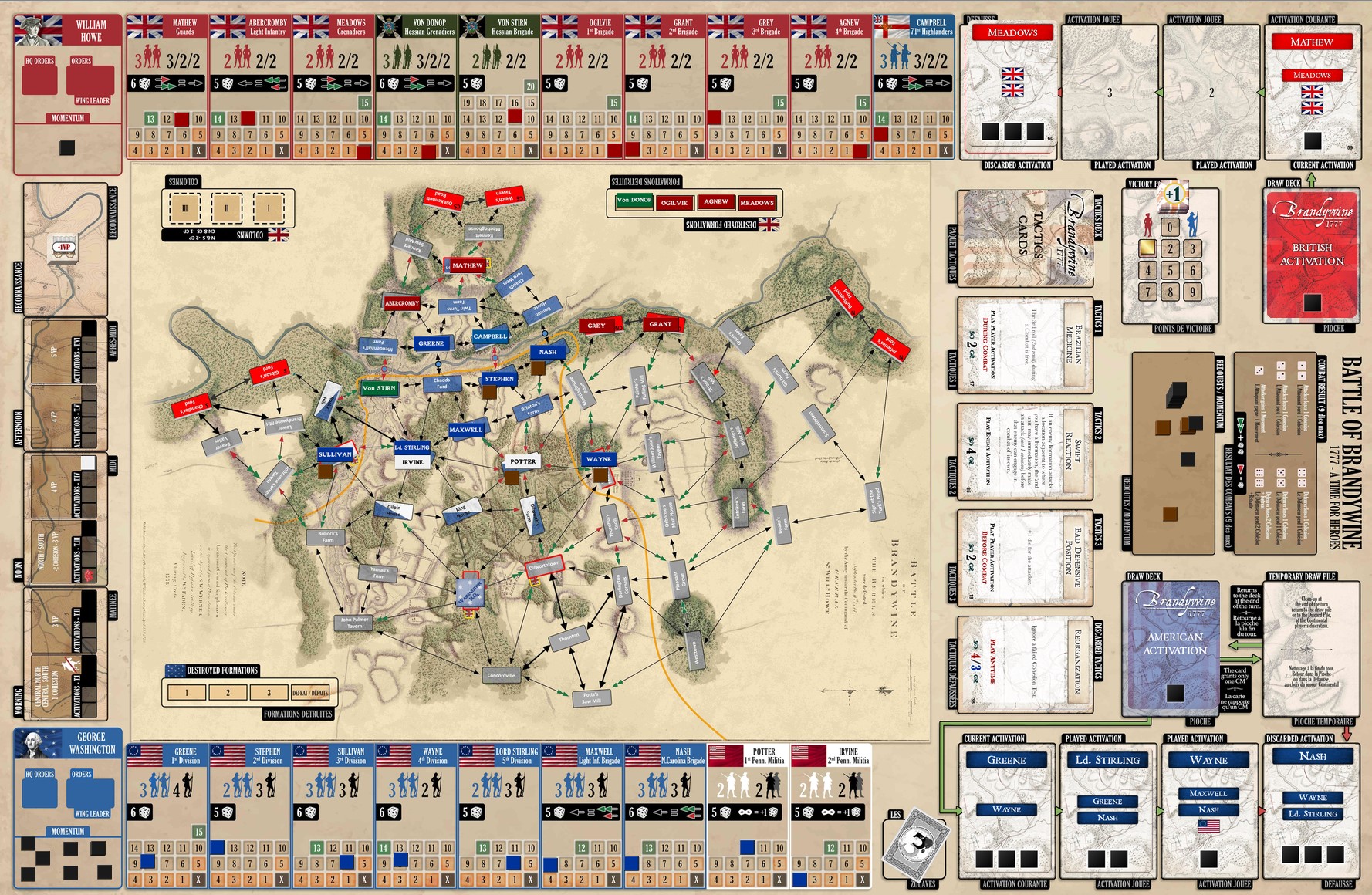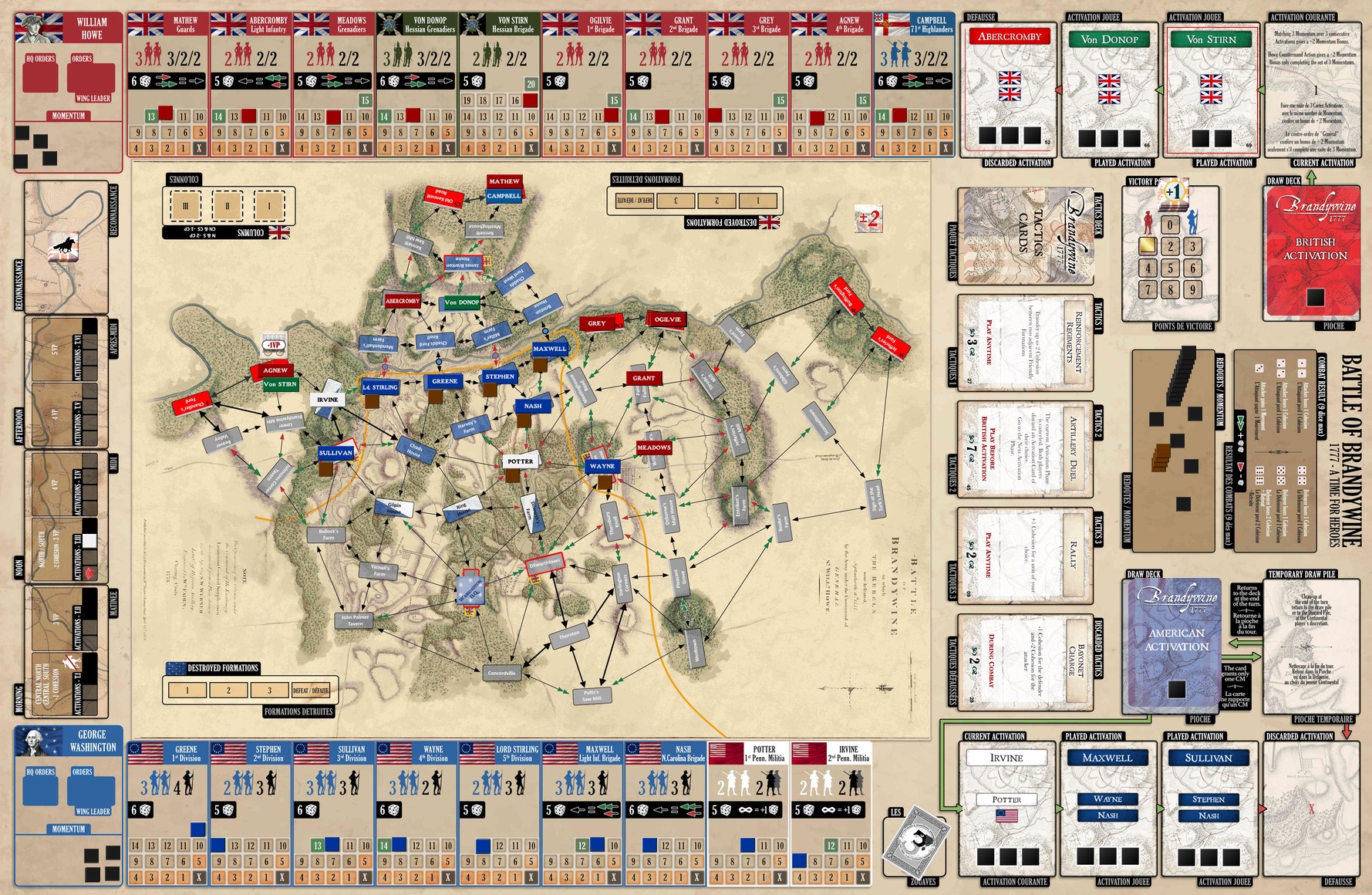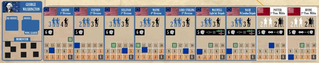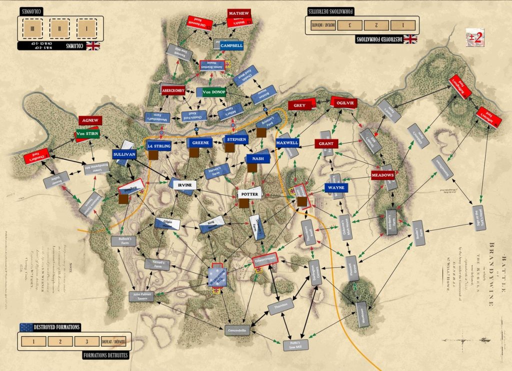 On garde un socle commun : c’est la série A Time for Heroes. Mais on ajoute ou modifie selon la bataille. Dans Brandywine, pas de renforts, mais deux nouveautés : reconnaissance et colonnes cachées (sans double aveugle, ni paravent).
