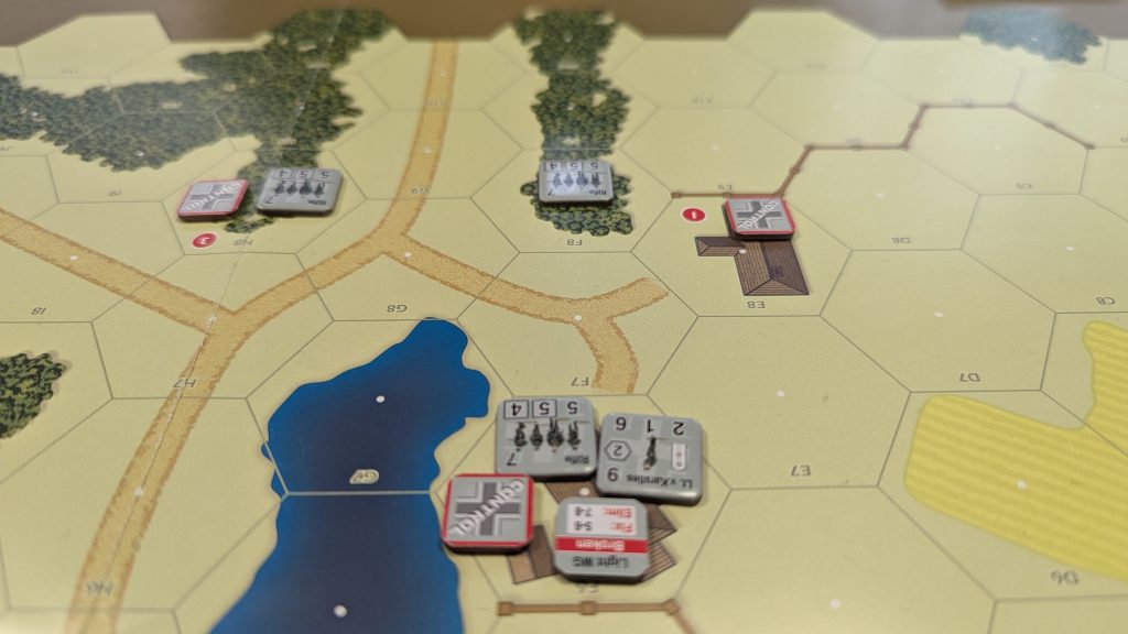 De plus, l’intérêt de ce système est qu’il faut, en plus de la gestion des troupes, des distances de tir, des lignes de vue et autres joyeusetés comme le couvert, gérer sa main. En effet, il n’est pas rare d’avoir un bon coup à faire et de devoir… patienter jusqu’à tirer la bonne carte. Cela peut sembler frustrant de ne pas pouvoir faire exactement ce que l’on veut quand on le veut mais cela permet aussi de construire des moments assez fantastiques où tout va s’enchaîner fluidement, avec des assauts, tirs d’opportunité, couvertures et autres jets de fumigènes.