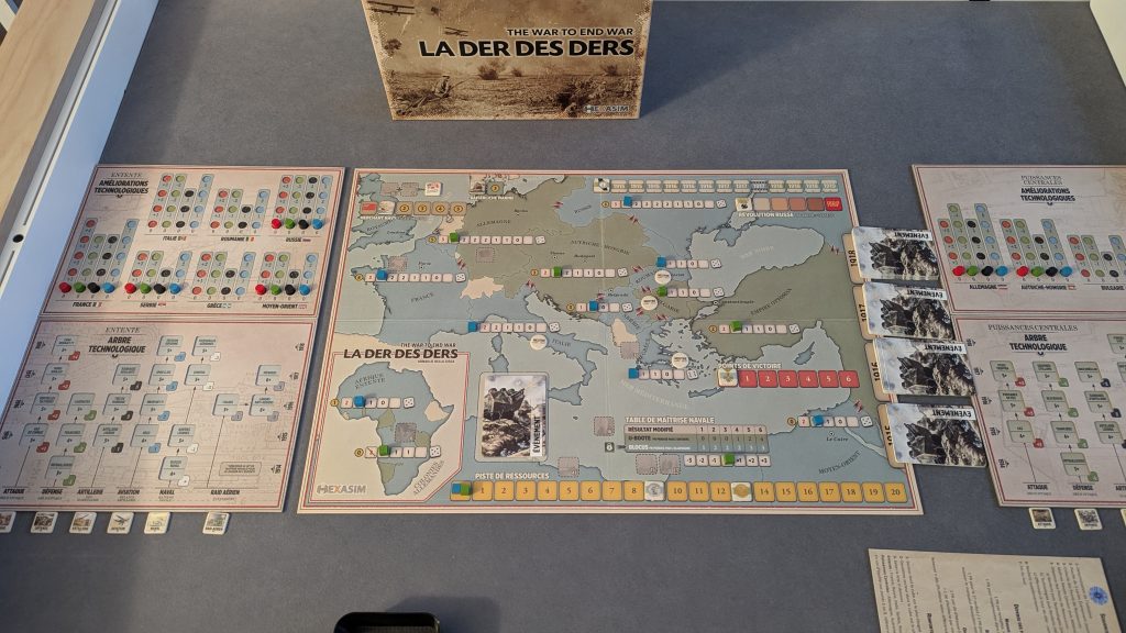 La Der des Ders: The War to end War de son nom complet, est un jeu stratégique sur la Première Guerre Mondiale mettant en scène l’Entente et les Puissances Centrales – avec en plus les colonies africaines – sur lequel deux joueurs peuvent s’affronter mais qui accepte aussi le jeu en solitaire via l’utilisation d’un bot, Athena, très bien fichu qui peut incarner le camp délaissé par le joueur grâce à un deck de cartes dédié.