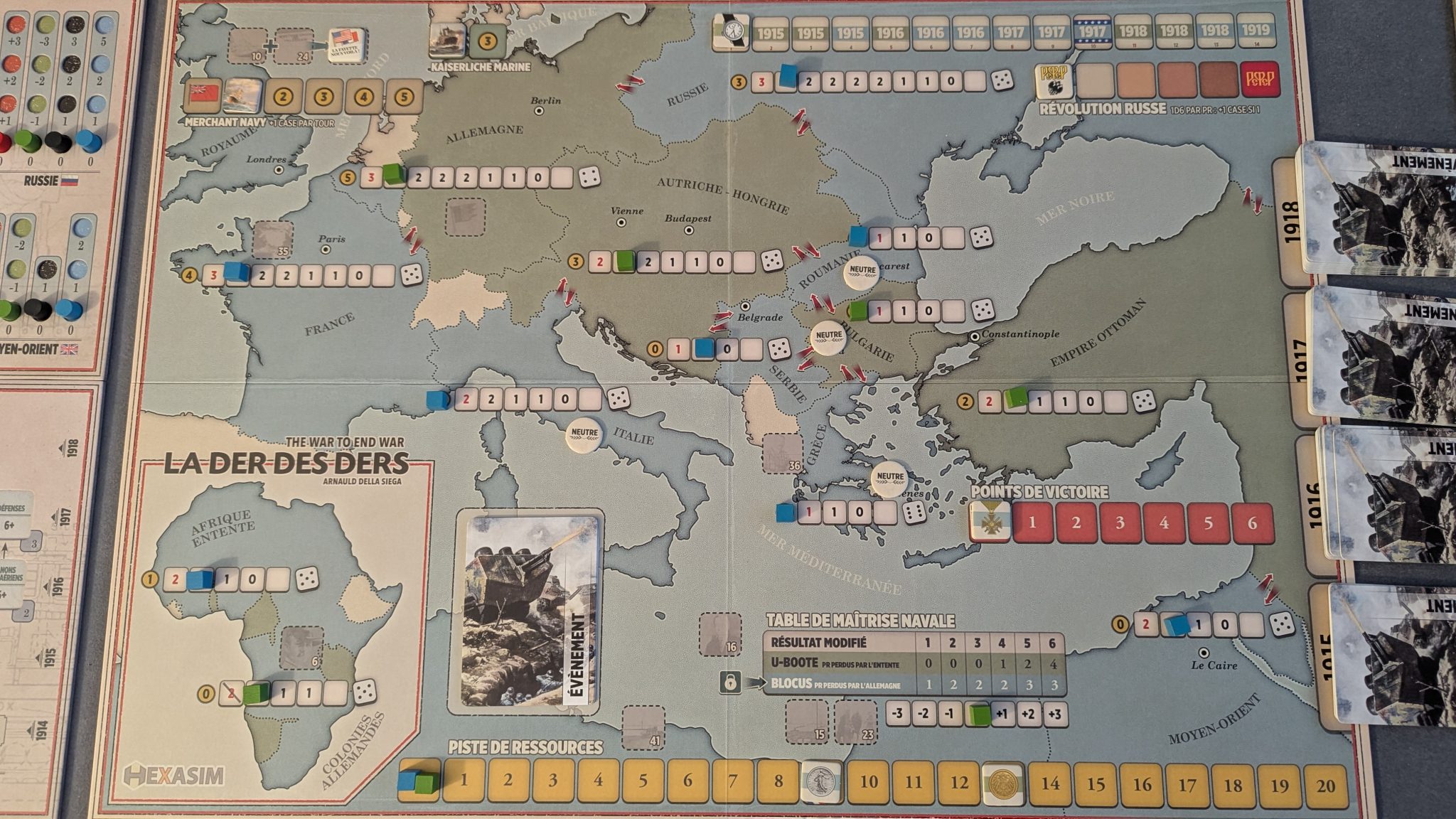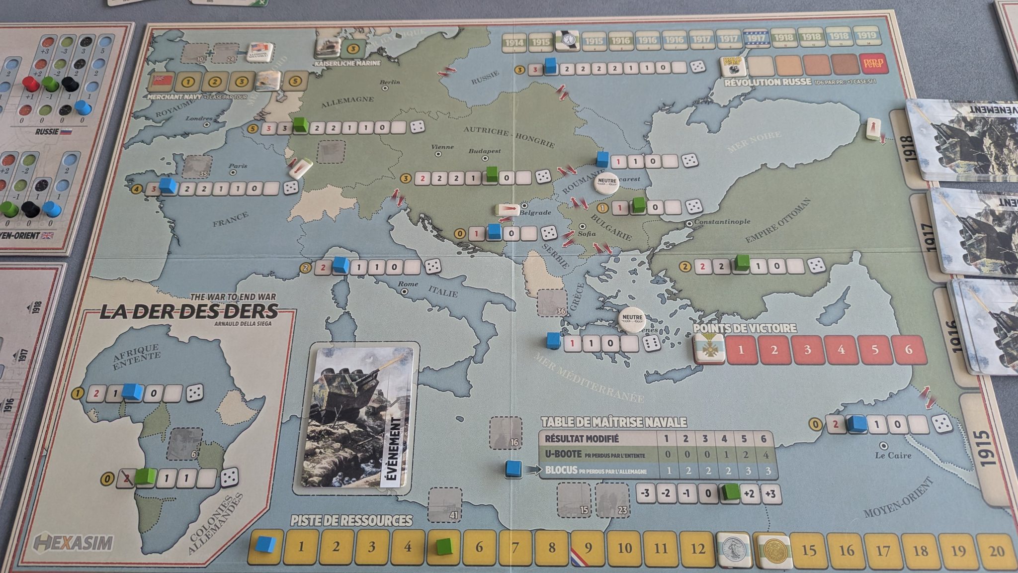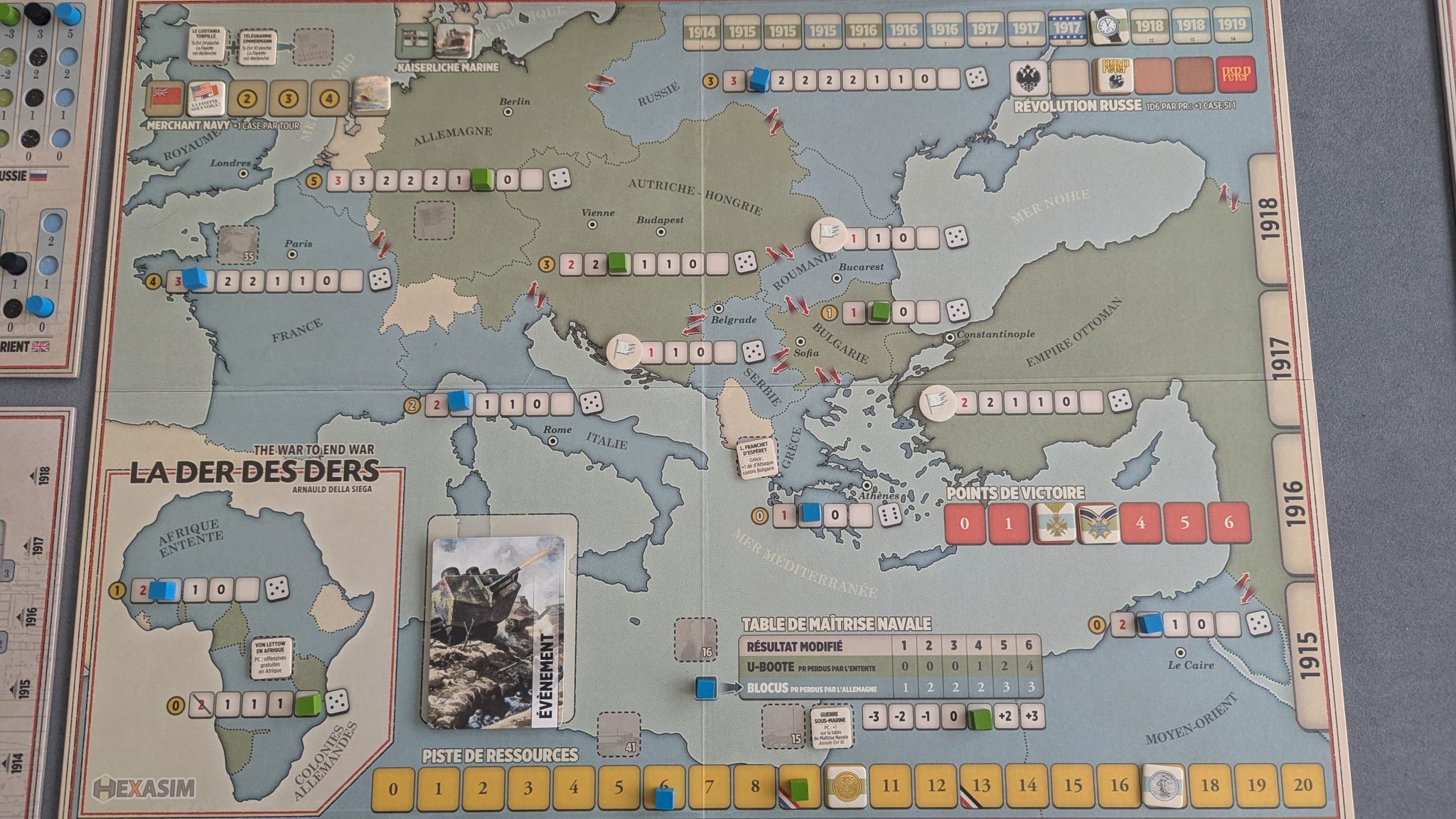 Si certaines règles semblent avoir été modifiées, comme la piste de Révolution russe (je ne vous en ai pas parlé mais la Russie peut – et va sûrement – sortir de la guerre à un moment ou à un autre), je ne pourrais pas tout vous lister, n’ayant pour ma part jamais joué au premier opus.
