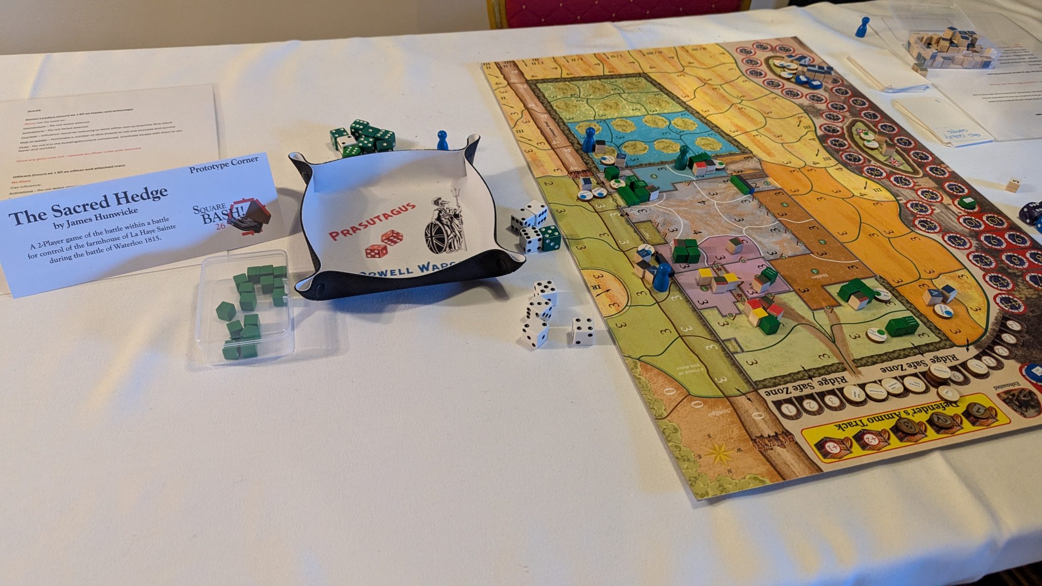 Accueillis par Andrew et son adorable épouse Caroline qui étaient toujours disponibles pour satisfaire les demandes, les joueurs disposaient de deux spacieuses pièces où de grandes tables étaient installées, pour des aires de jeu modulables selon le jeu. Les déplacements étaient faciles car les allées étaient suffisamment larges pour ne pas bousculer les joueurs et les organisateurs avaient eu la très bonne idée de faire un coin pour les prototypes, où de nombreux auteurs présentaient leurs bébés.
