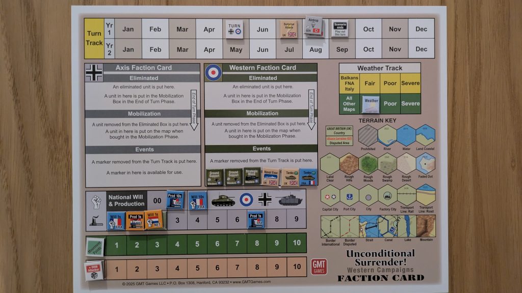 GMT Games étoffe sa gamme de petits jeux avec la sortie de Unconditional Surrender! Western Campaigns (USWC). Une revisite au format poche du titre stratégique éponyme, séduisante dans l’idée mais dont l’exécution peine finalement à me convaincre.