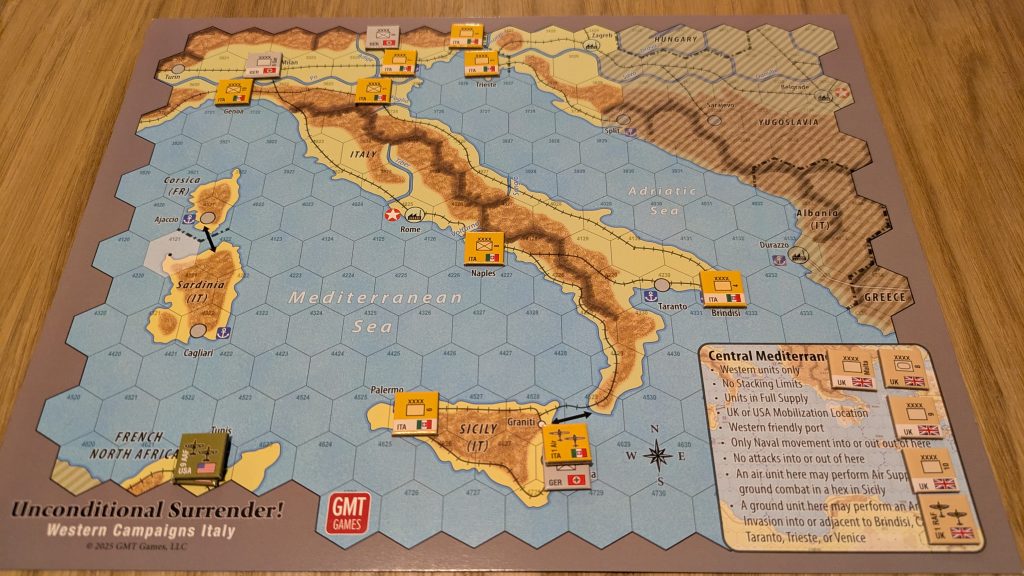Il risque aussi de frustrer le nouveau joueur car malgré son échelle et une légère simplification des règles, Unconditional Surrender! Western Campaigns se révèle trop lourd. Trop lourd en terme de règles, peu complexes pour un habitué mais bien trop denses au vu de ce qui est présent sur le plateau.