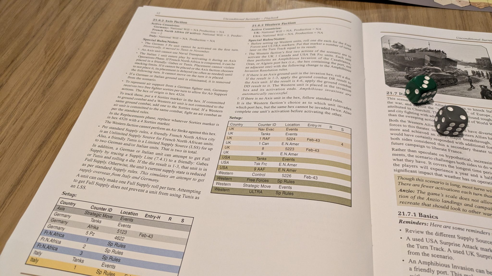 Il risque aussi de frustrer le nouveau joueur car malgré son échelle et une légère simplification des règles, Unconditional Surrender! Western Campaigns se révèle trop lourd. Trop lourd en terme de règles, peu complexes pour un habitué mais bien trop denses au vu de ce qui est présent sur le plateau.