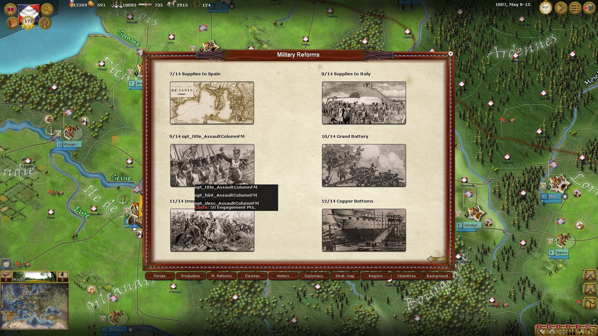 On peut aussi rajouter quelques petits défauts, comme quoi les batailles ne sont pas assez déterminantes, comme elles se passent en général sur une seule province c’est souvent le plus gros stack qui gagne. Ou encore, le fait que l’IA tend à ne pas s’allier convenablement, l’Angleterre qui abandonne vite ses débarquements et peine à trouver des alliés valables, le manque d’événements liés aux royalistes, l’ennemi qui ne se rend pas quand tout est perdu (il propose la paix mais je veux le forcer à signer des traités moi, pas juste qu’il me paie quelques centaines de milliers de Livres)…